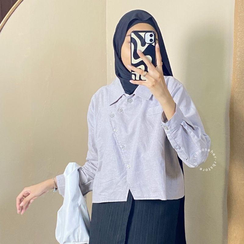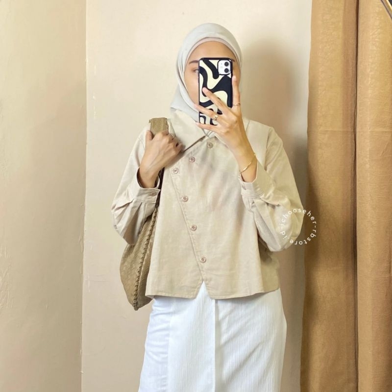 Ivone Top Outer Linen Atasan Crop Wanita Korean