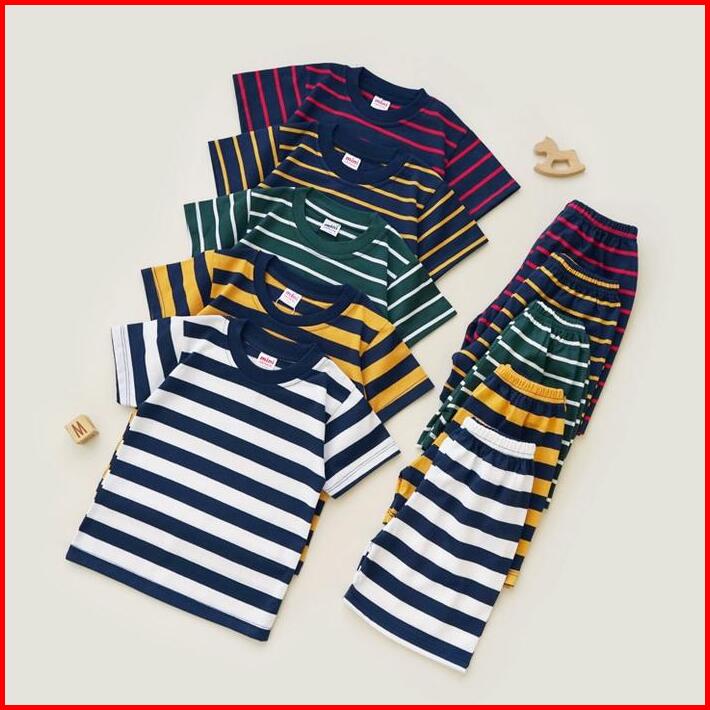 Mini Cottons Setelan Anak Kaos Kids Set Striped Celana Fashion