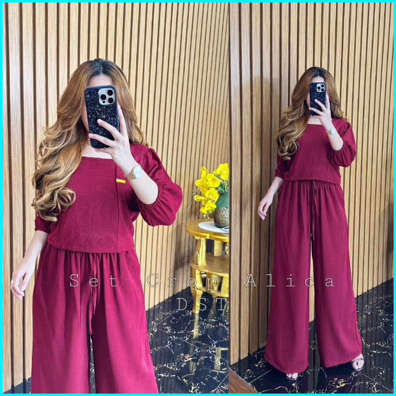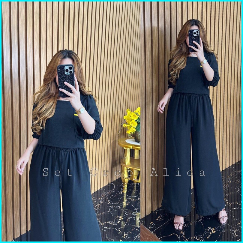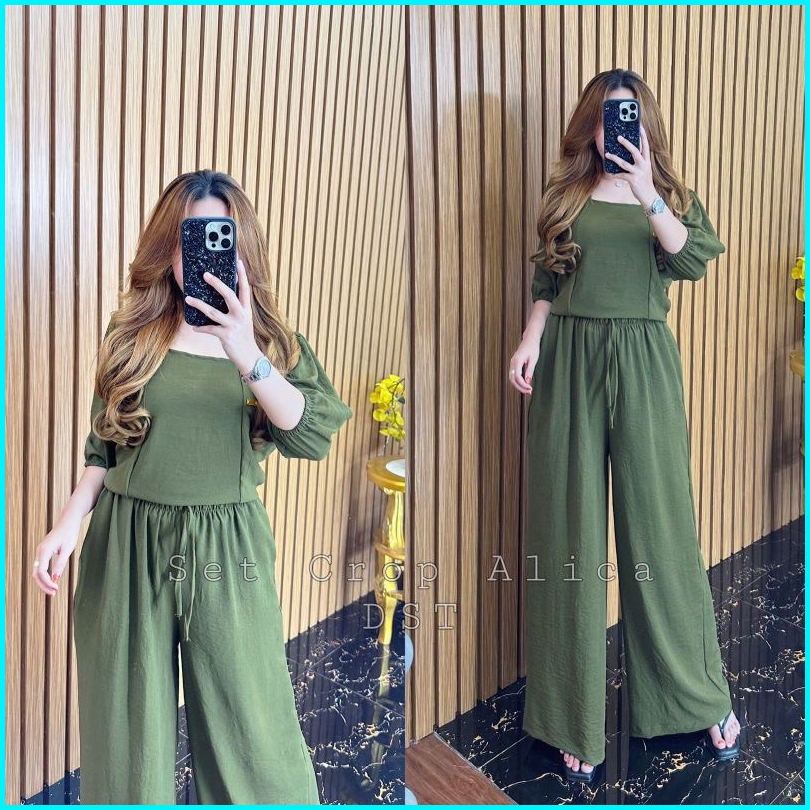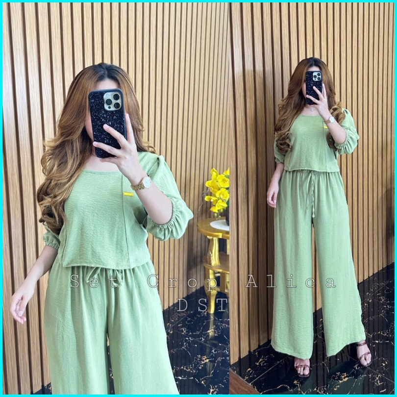 One Set Crop Alica Bahan Cringkel Airflow Setelan Crop Kekinian One Set Cringkel Airflow