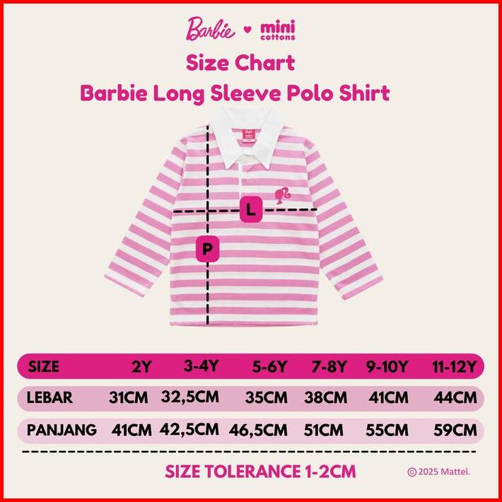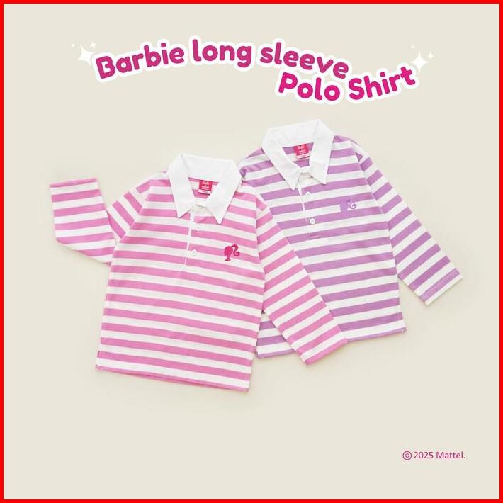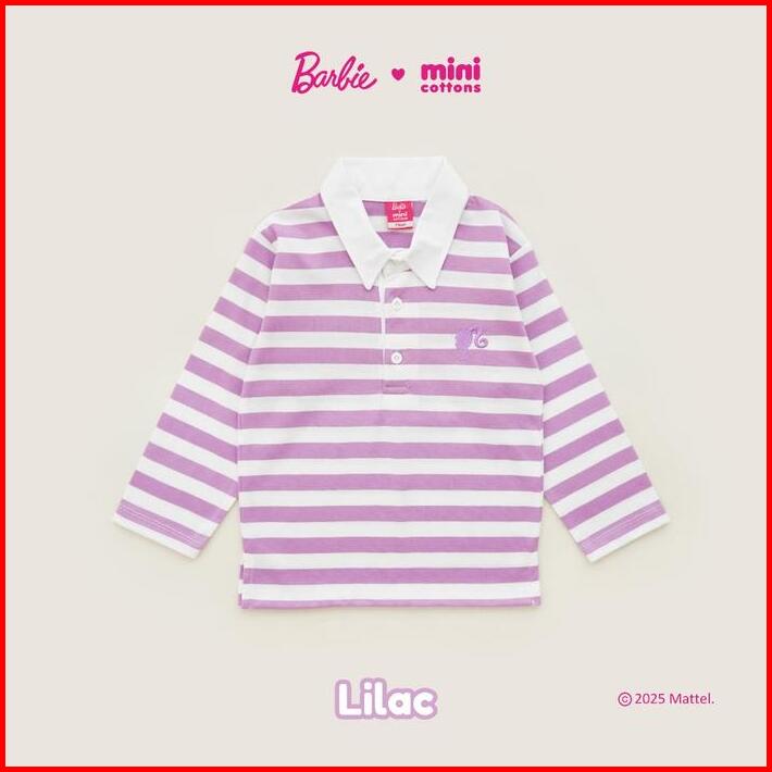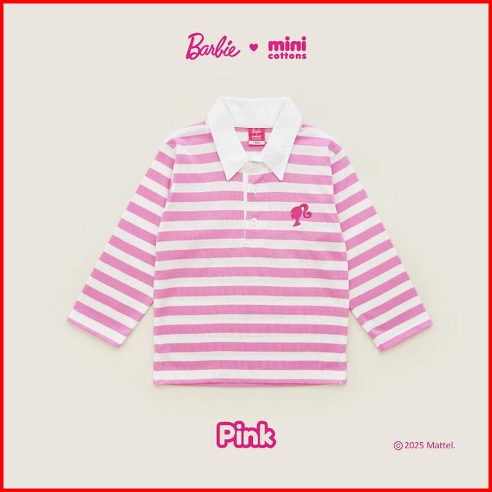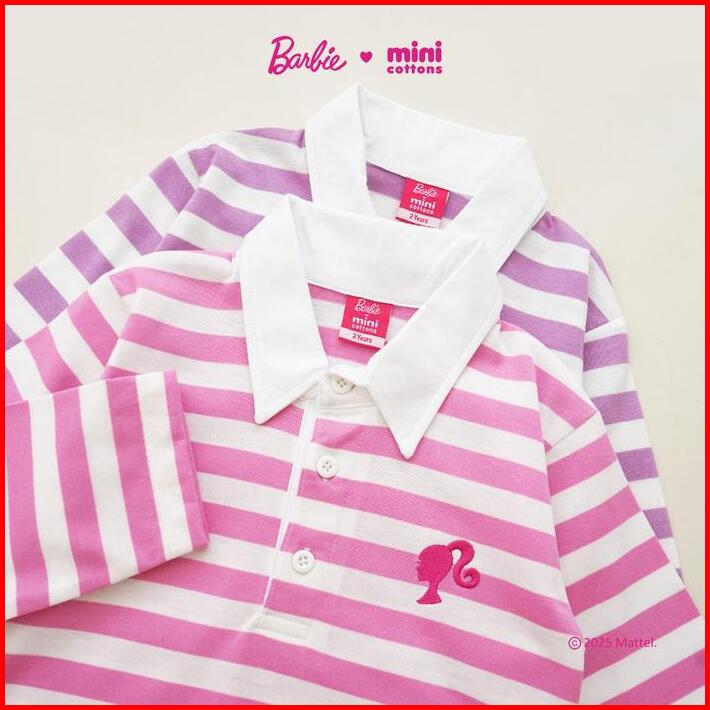 Barbie X Minicottons Long Sleeve Polo Stripe Tshirt Lengan Panjang Polo Salur Anak Unisex 1-12 Tahun