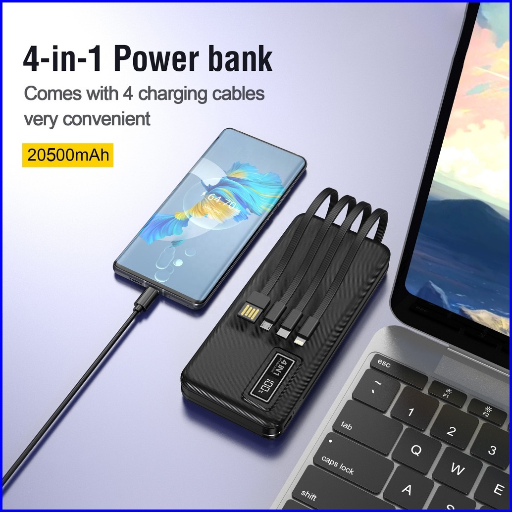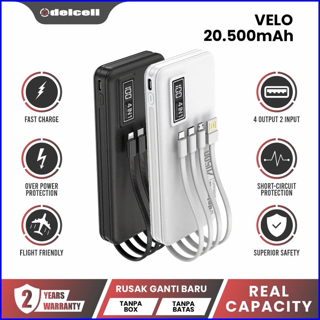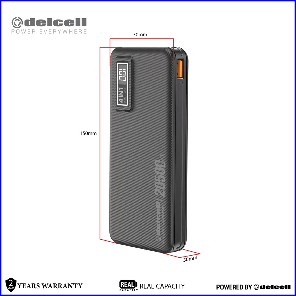 Delcell Velo Power Bank 20500mah 10500mah Led Digital With Cable Fast Charge