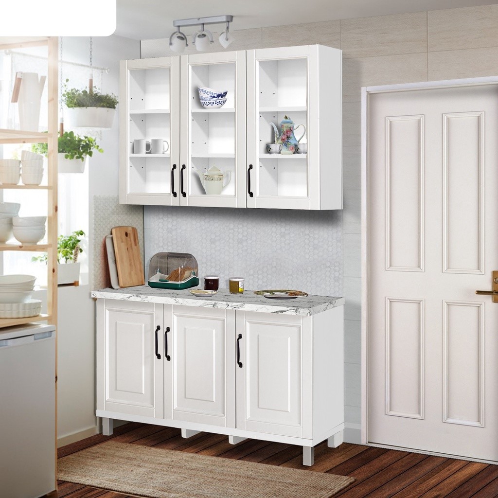 Kitchen Set Lemari Atas Bawah 2 dan 3 Pintu Minimalis Scandinavian White Putih - Mutiara modern alumunium atas bawah