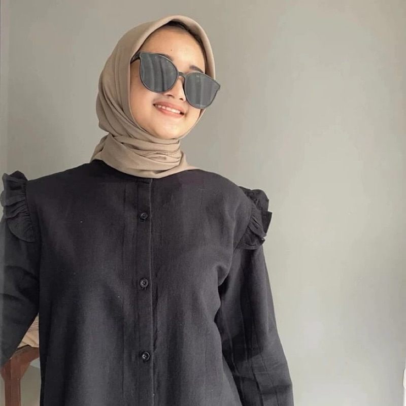 Yurim Blouse Ruffle - Atasan Wanita - Kemeja Linen Basic Lengan Panjang