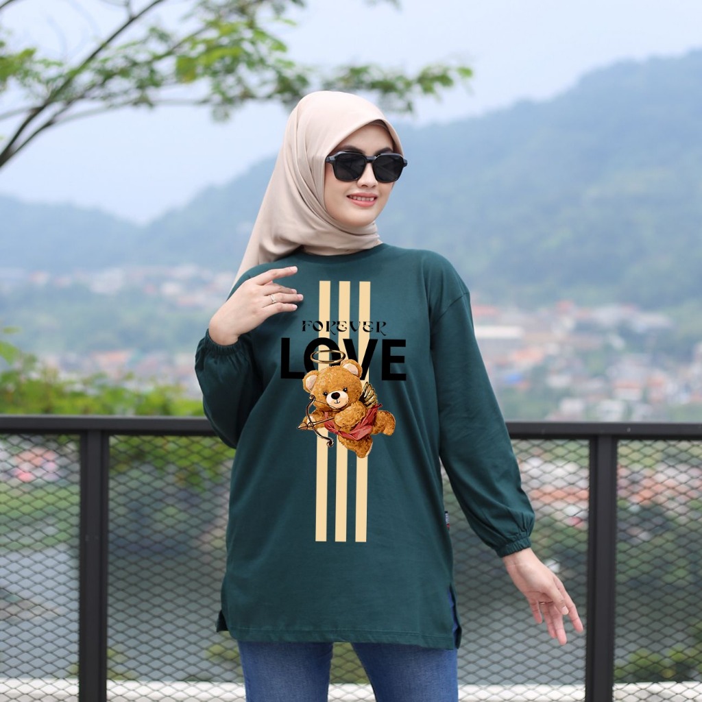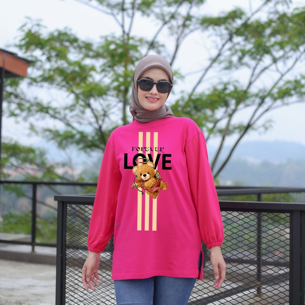 Forever Cloth Kaos Oversize Wanita Lengan Panjang Kerut Bahan Cotton Combed 24s Motif Cupid Bear