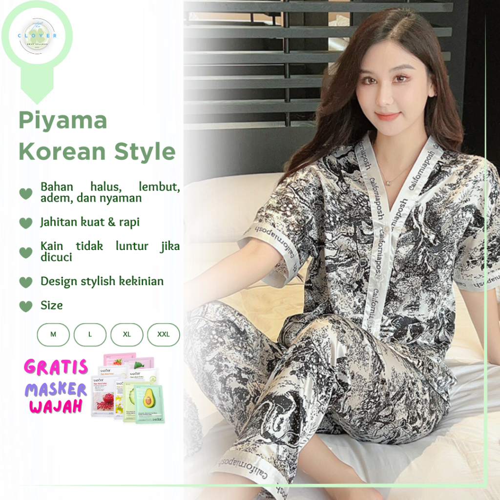 Baju Tidur Piyama Pajamas Wanita Dewasa Import Full Kancing Motif Terbaru Celana Panjang