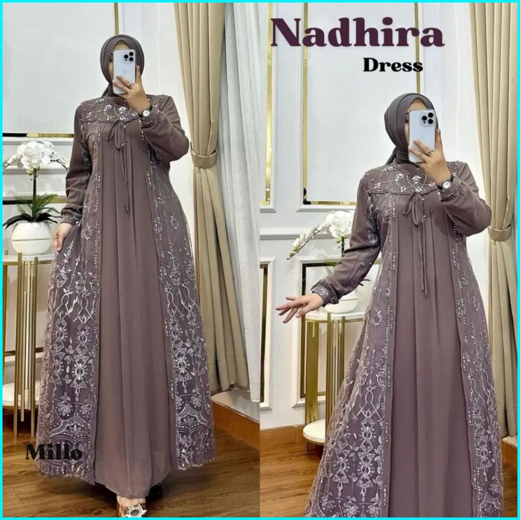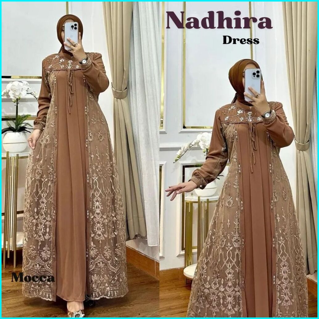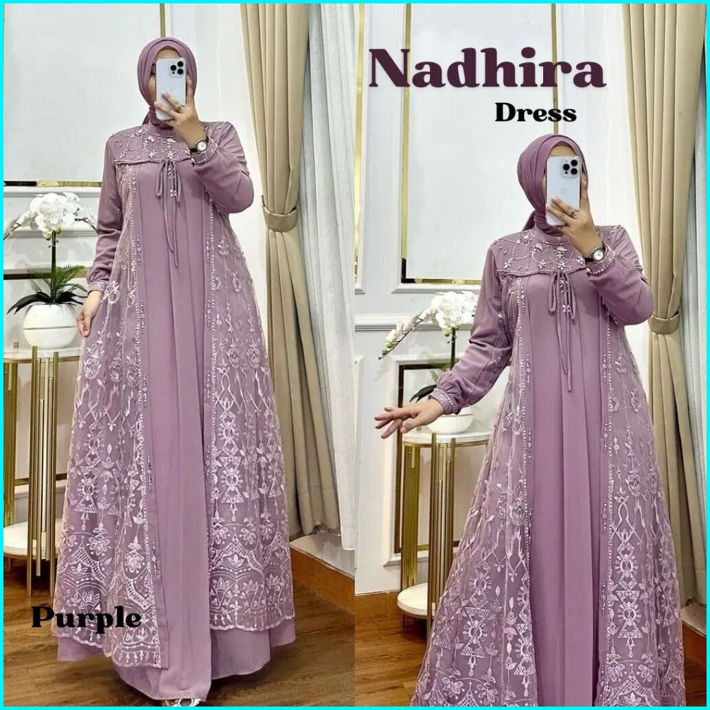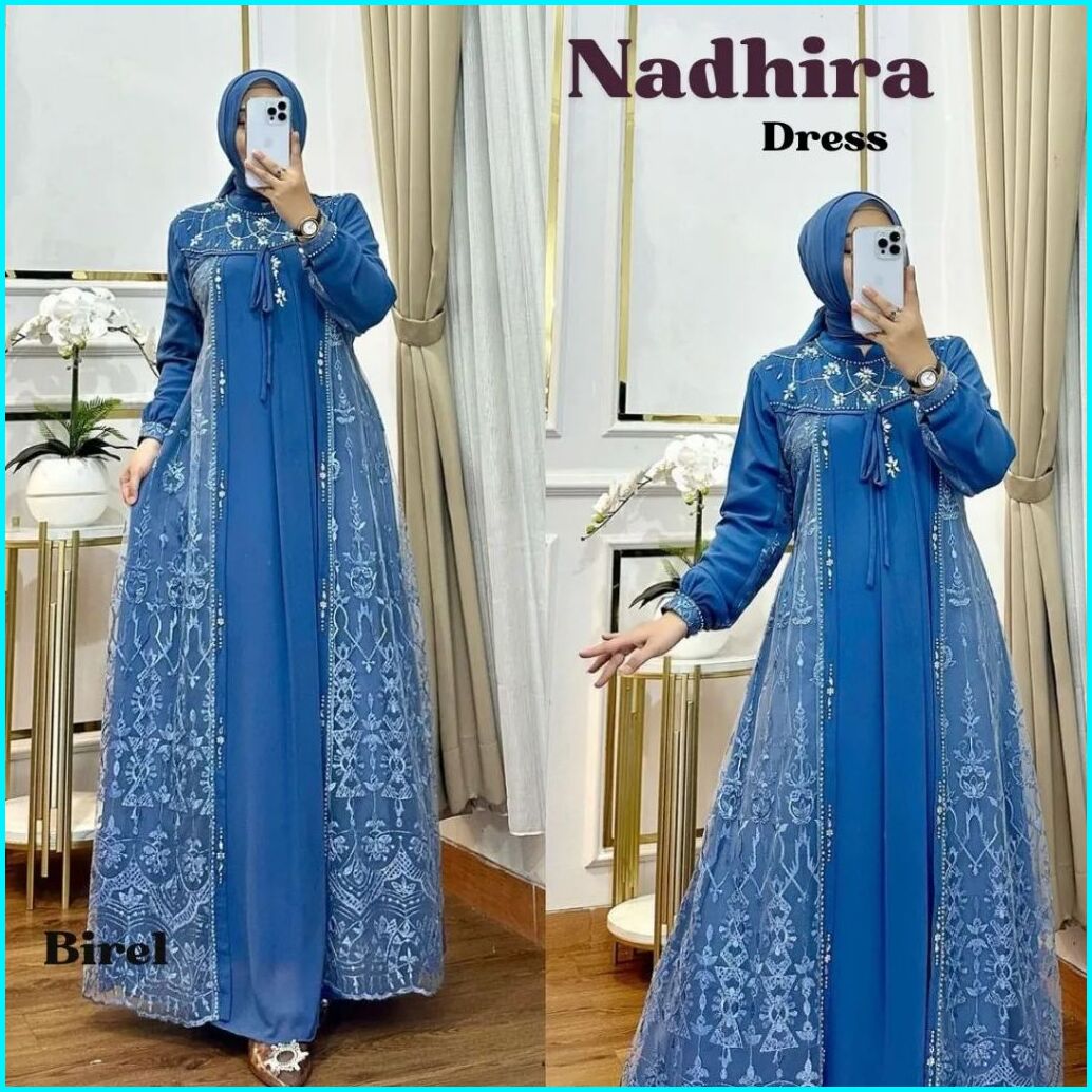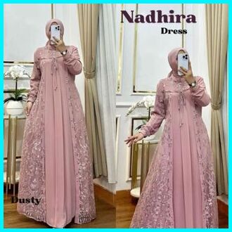 Gamis Wanita Kekinian Nadhira Dress Bl M L Xl Xxl Bahan Ceruty Babydoll Baju Gamis Pesta Mewah Elegan Dress Brukat Konda