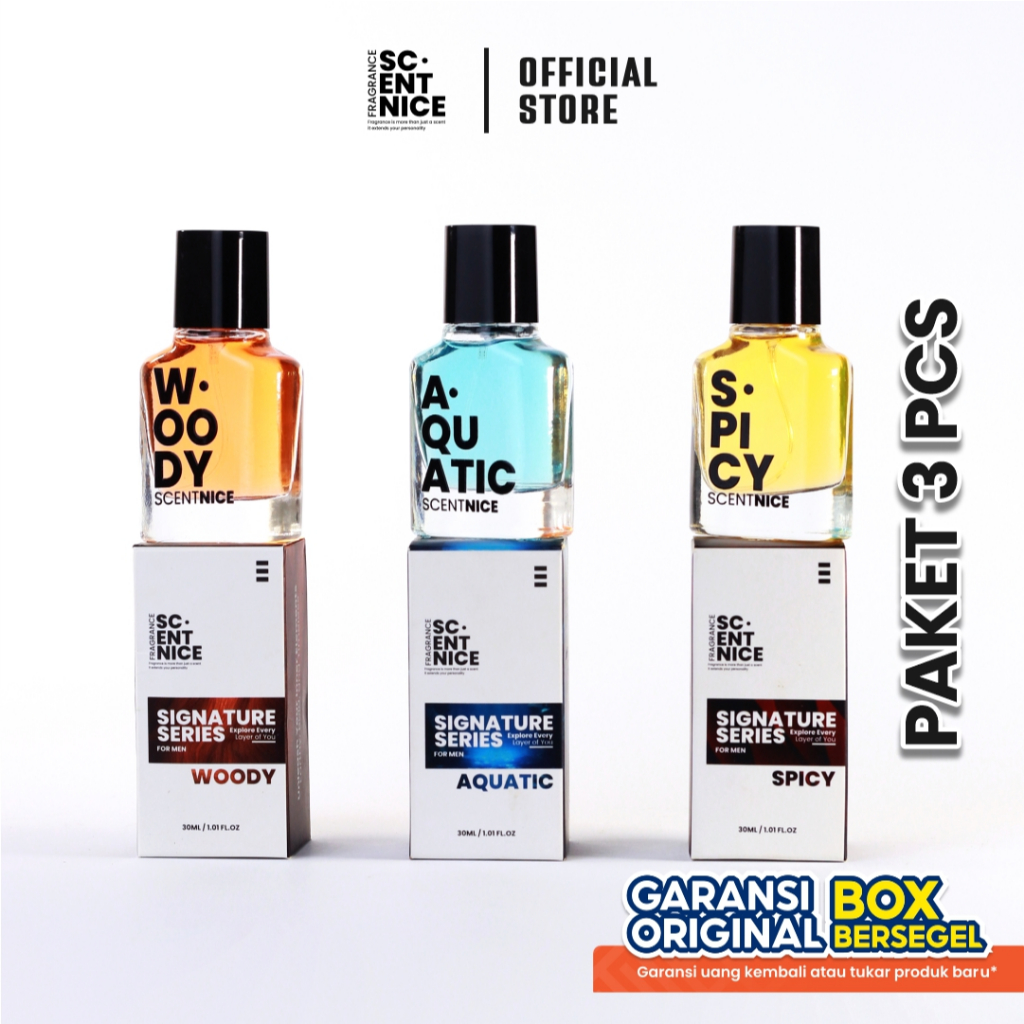 SCENTNICE Signature For Men Pack 3 pcs Parfum Pria Spicy - Woody - Aquatic - Perfume Laki Laki Minyak Wangi Tahan Lama Mewah Elegant Parfume Laki Laki
