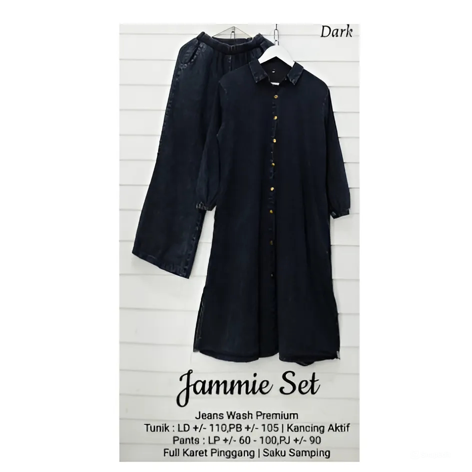 𝔽𝕒𝕧𝕠𝕣𝕚𝕥𝕞𝕦.𝕚𝕕Jammie Set Long Jeans Setelan HQ Denim Washed Setelan Celana Baju Tunik Wanita Kekinian
