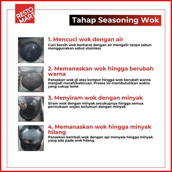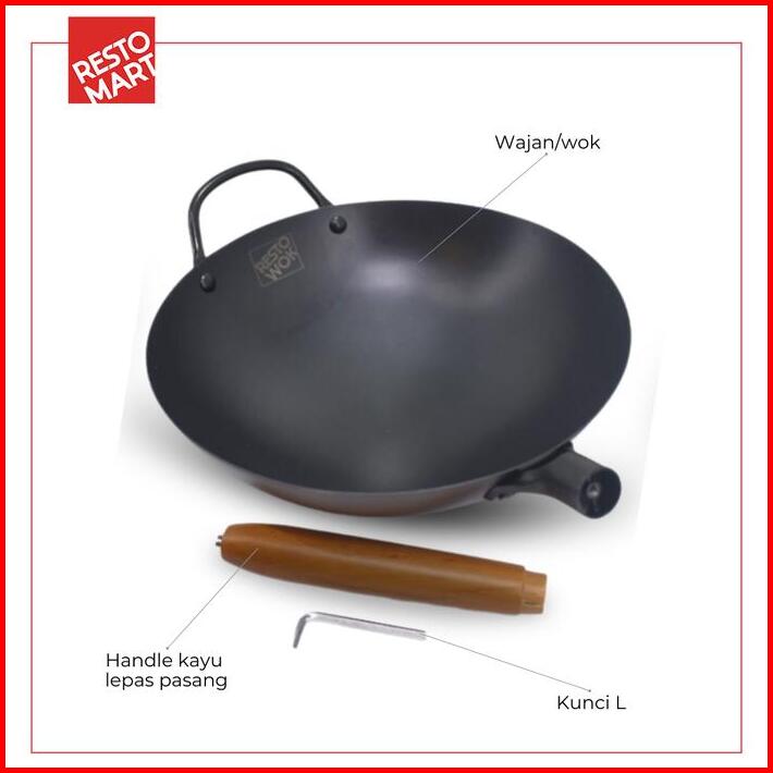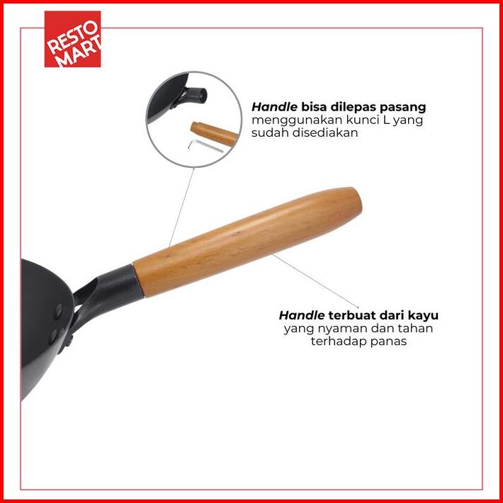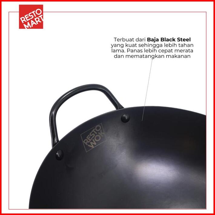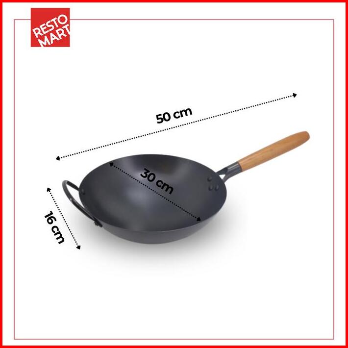 Wajan Baja Pre Seasoned Kuali Wajan Black Steel Single Handle Wok 30 Cm Restowok 2291093 F12