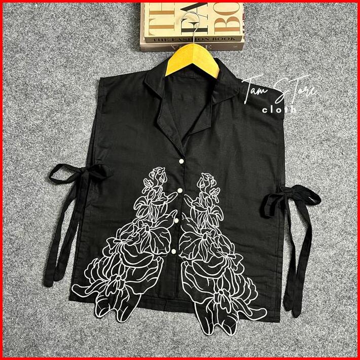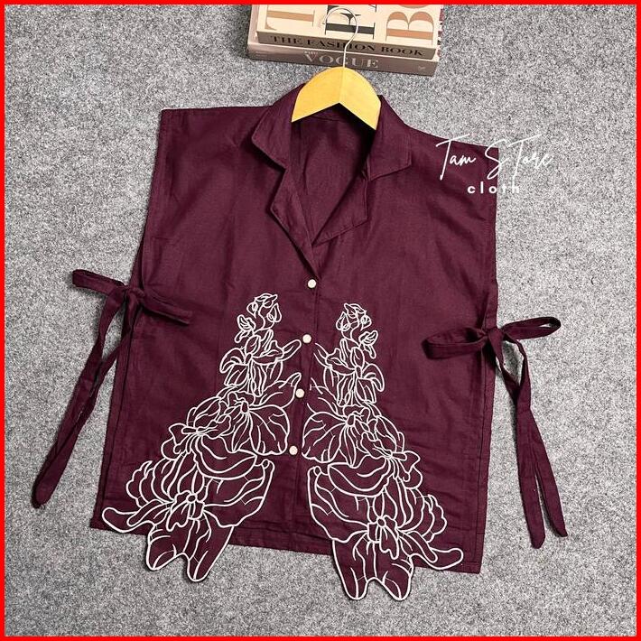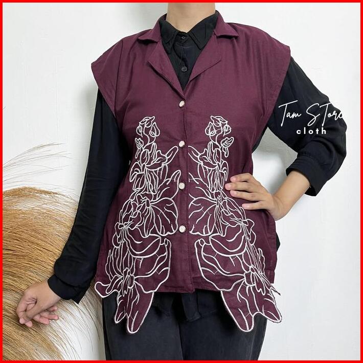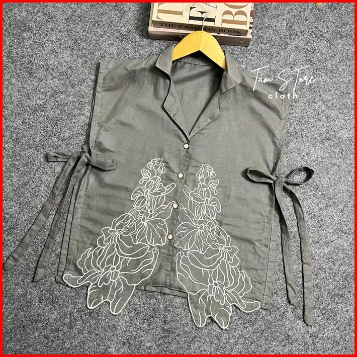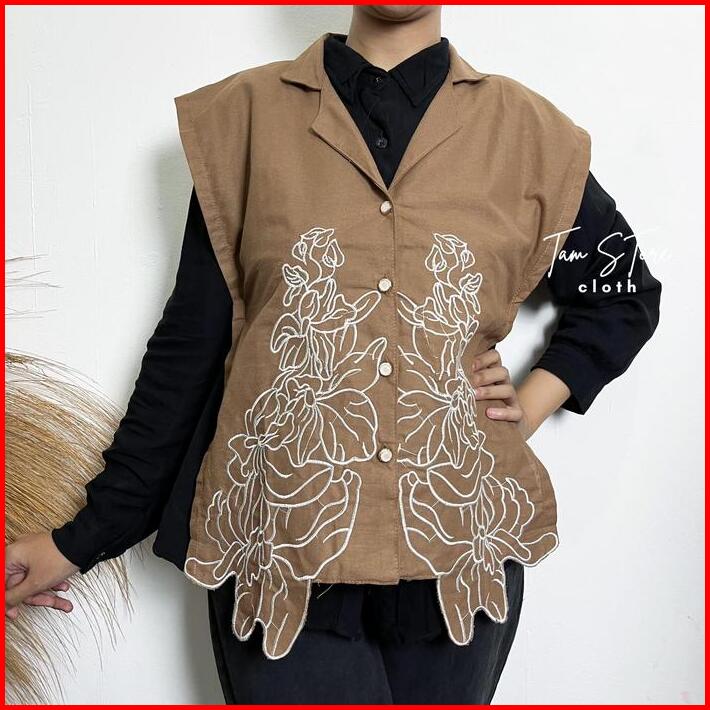 Tamstore Eliye Vest Kerah Rever Tali Samping Kancing Aktif Bahan Linen Rami