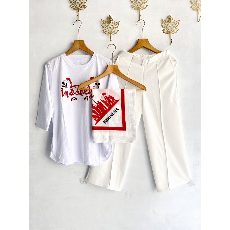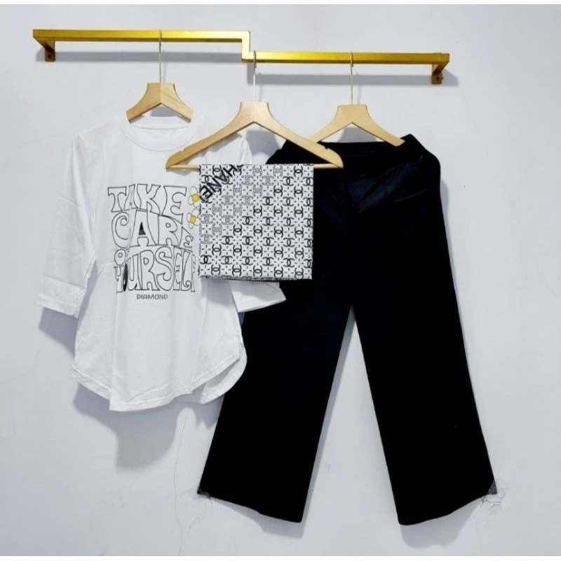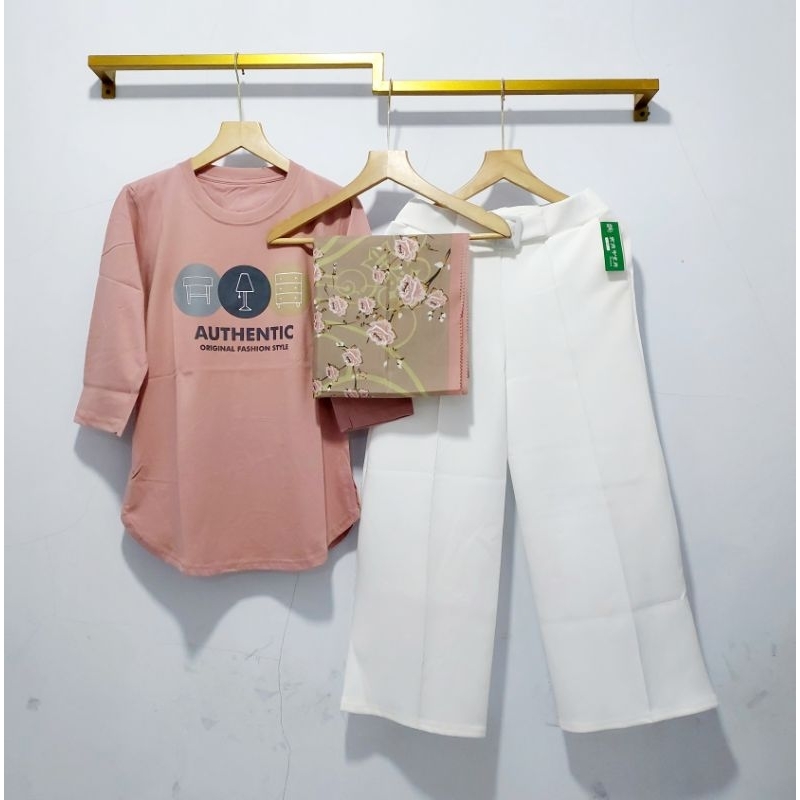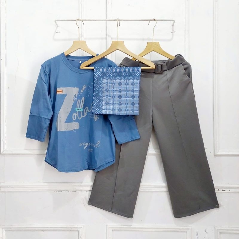 Kaos Combed Set Kulot Scuba + Hijab Voal Motif // PAKET HEMAT 3IN1 KULOT SET KAOS COMBED