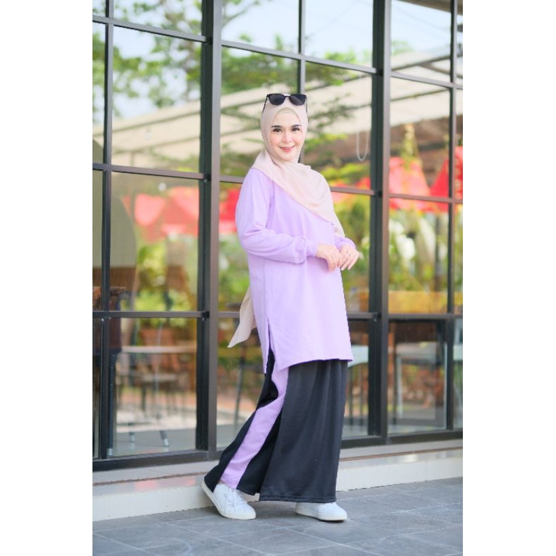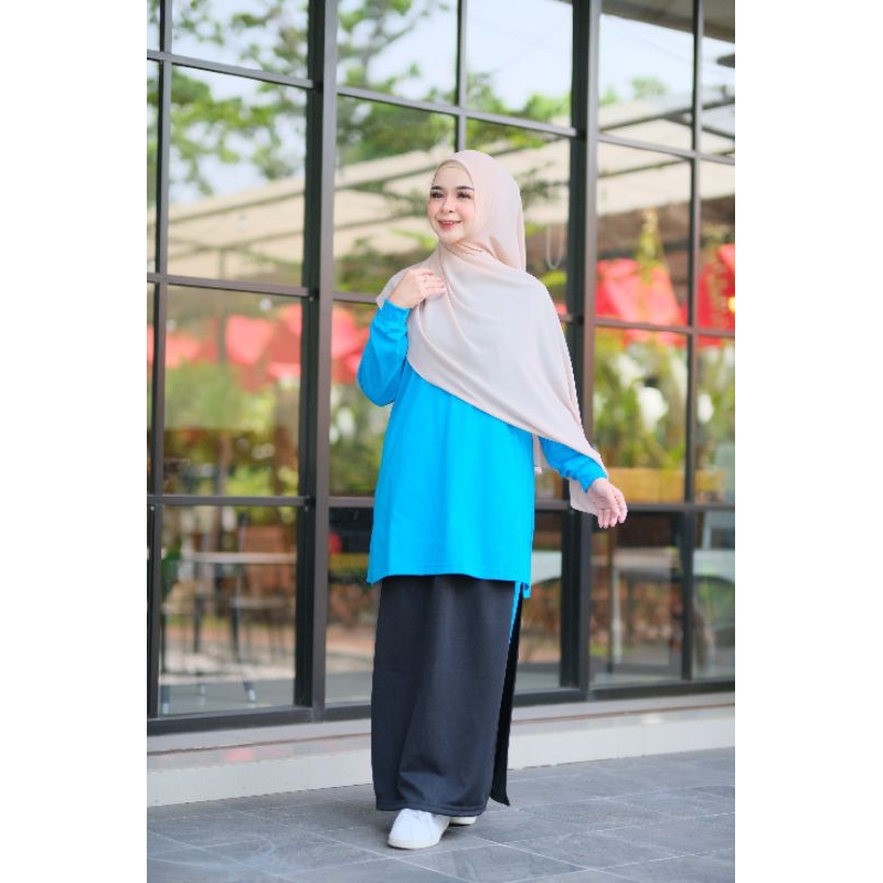 Setelan Olahraga Muslimah Tunik + Rok Celana Katun Lembut