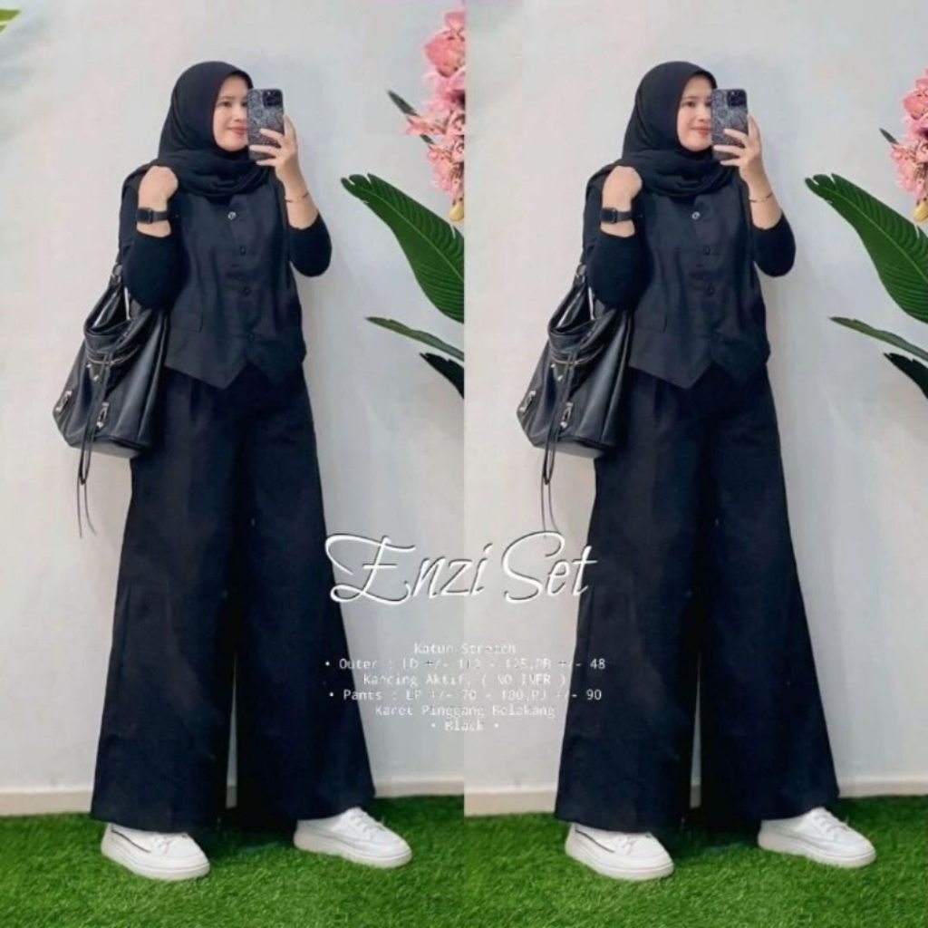 GamisSayriOriginal Enzi Set One Set Wanita Kekinian Bahan Katun Strech Baju Atasan Wanita dan Celana