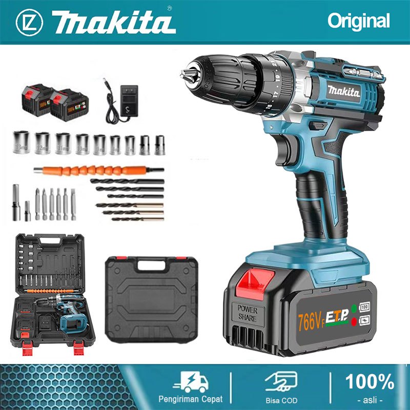 MAKlTA 766V Mesin bor 2baterai cas 10mm bor listrik Tangan Cordless murah bor tangan baterai besi tembok Beton kayu - Co