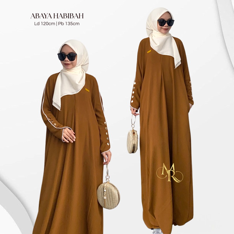 Abaya Basic Habibah Premium Gamis Plain Umroh Daily Abaya Kancing Dress Gamis Batwing Oversize Crinkle Inara Button