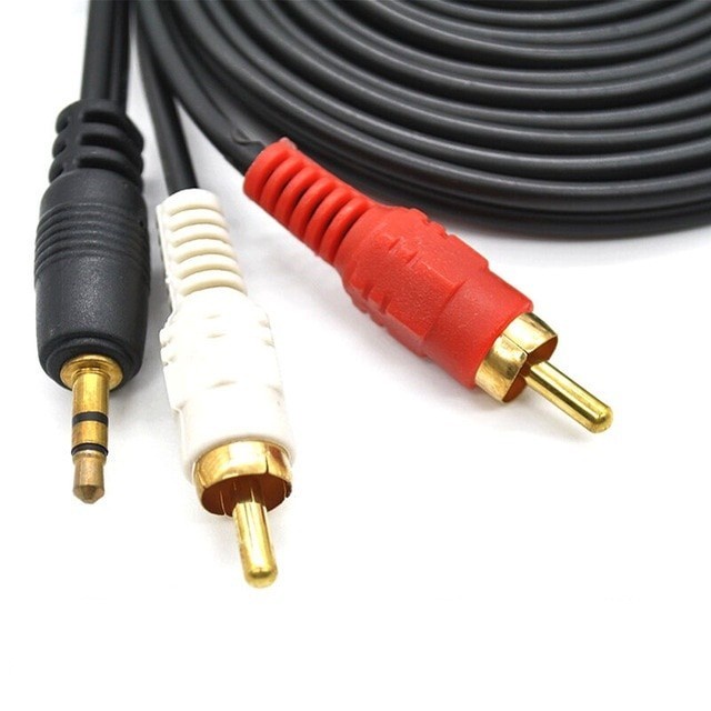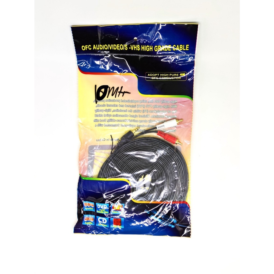 KABEL AUDIO TO RCA 2 KUNING MENGKILAP PLATED 10M (1-2) / JACK 3.5 - 2 RCA 10 METER