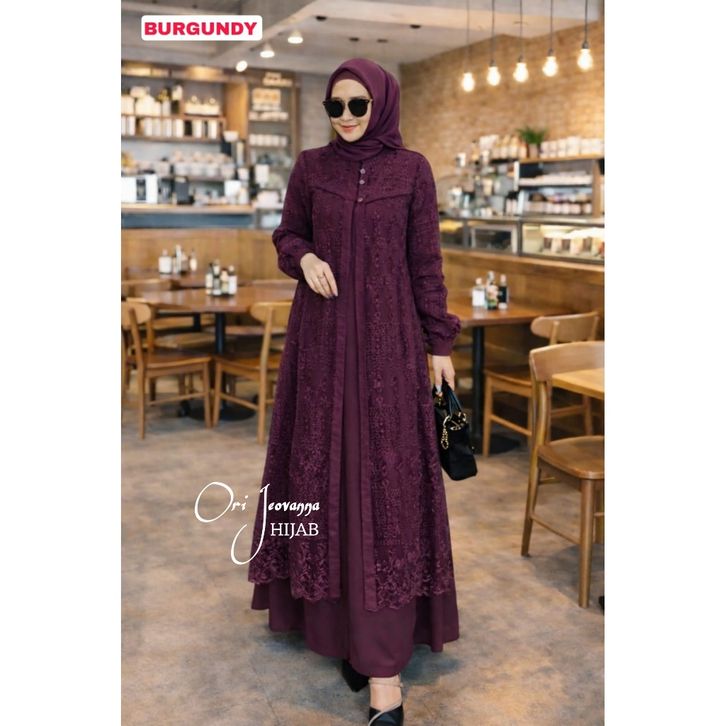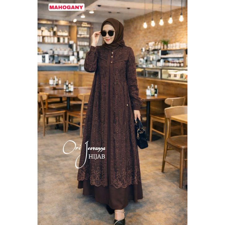 Gamis Hayya Termurah Brukat Mahogany Burgundy Teracota Gamis Brukat Kondangan Mewah Elegan 2026