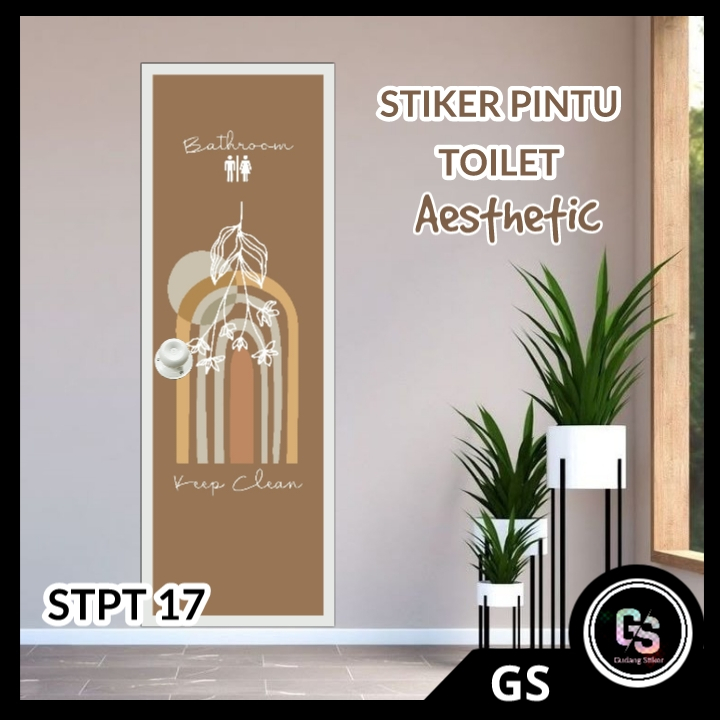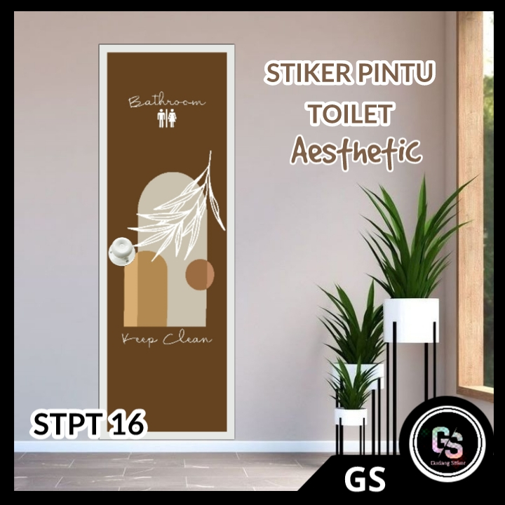 GDS Wallpaper siker pintu toilet pintu kamar mandi Motif DAUN Unik aesthetick kode STPT