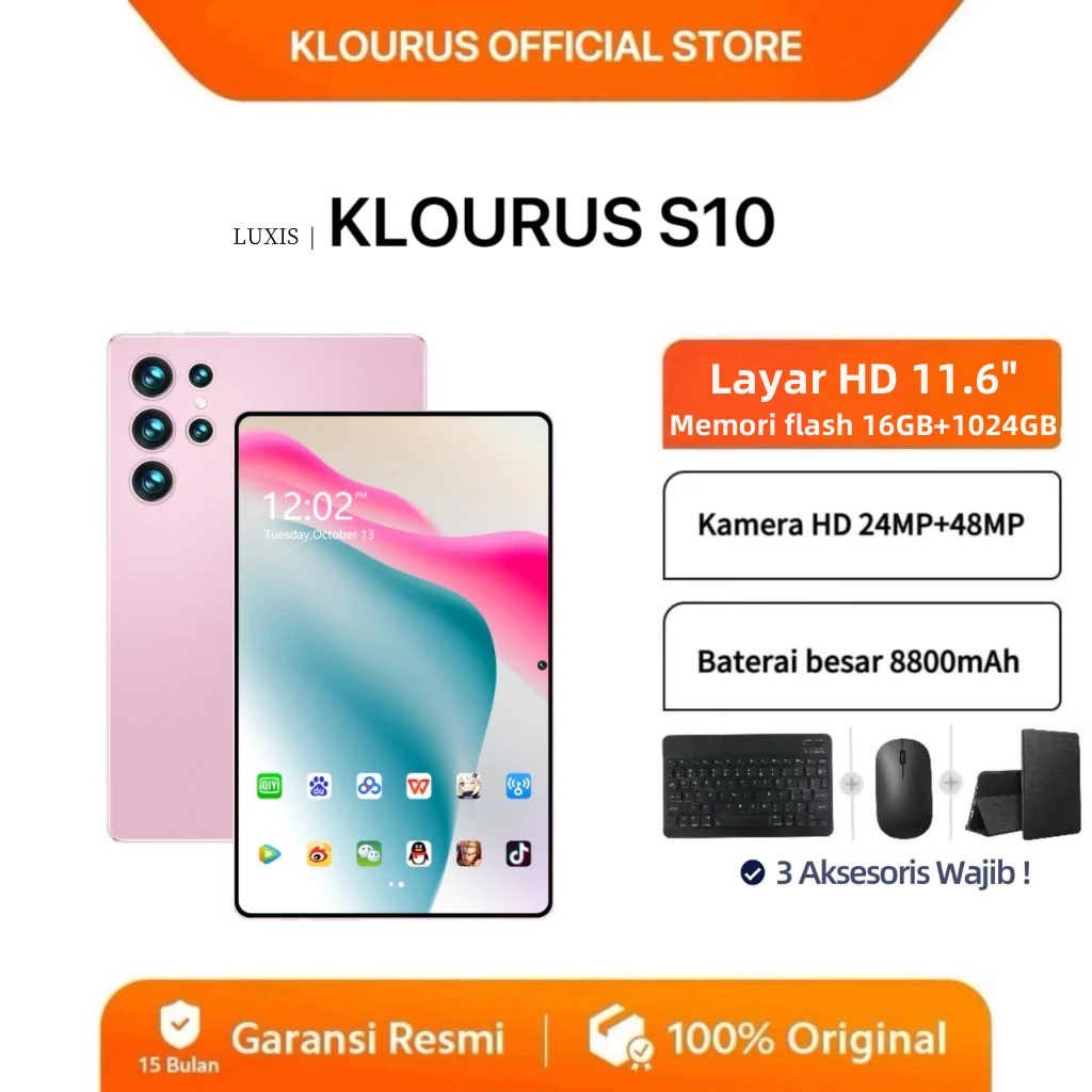 KLOURUS Tablet S10 16GB + 1024GB | IPS 11.6" | Tablet Murah untuk Belajar,Gaming, Kerja & Hiburan | 5G Dual SIM, WiFi