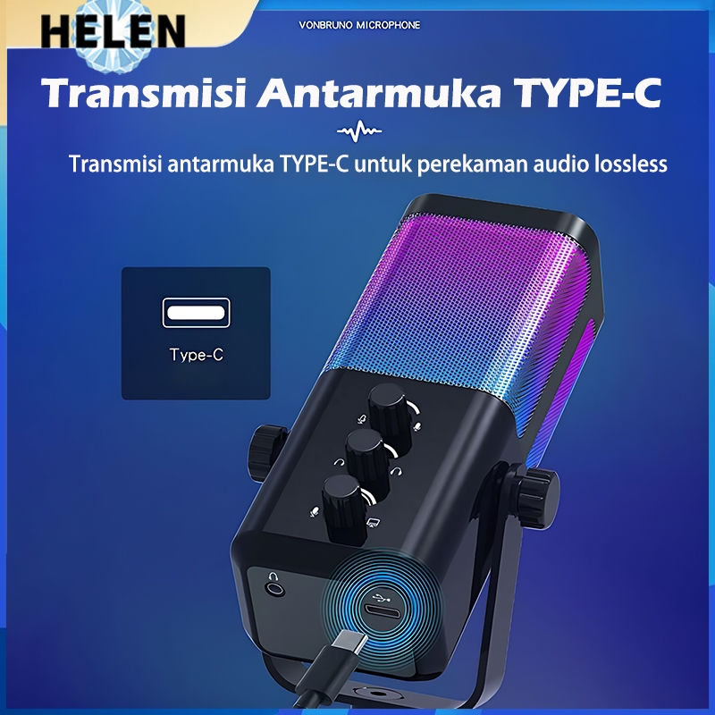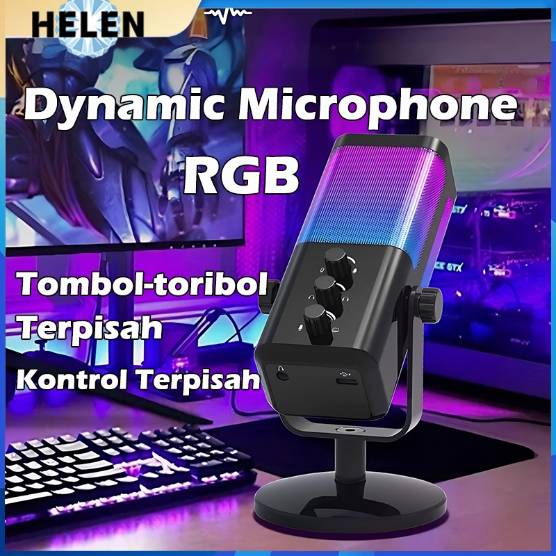 Microphone Condenser M7 RGB Tombol-Tombol Terpisah Mikrofon Dynamic USB Type-C for PC Laptop Live Streaming Gaming Recor