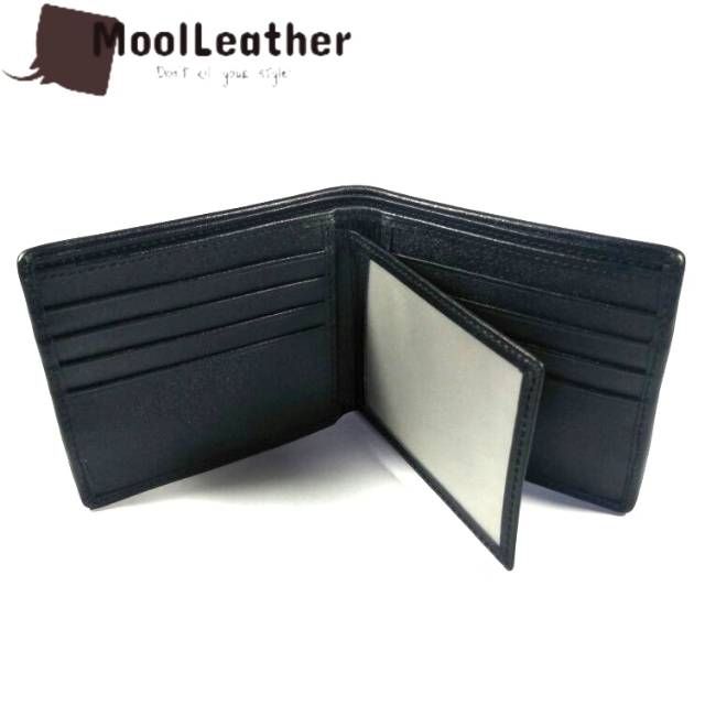 Mool Leather - Dompet pria asli kulit ikan pari dan sapi motif dua garis diamon warna hitam