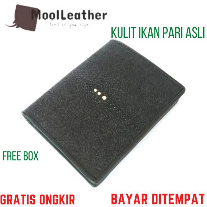 Mool Leather - Dompet pria berdiri asli kulit ikan pari warna hitam mata titik