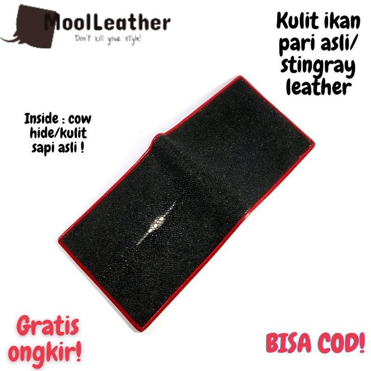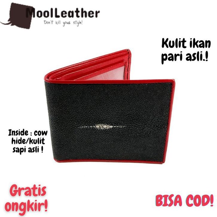 Mool Leather - Dompet pria cowok kulit asli ikan pari dan sapi hitam merah