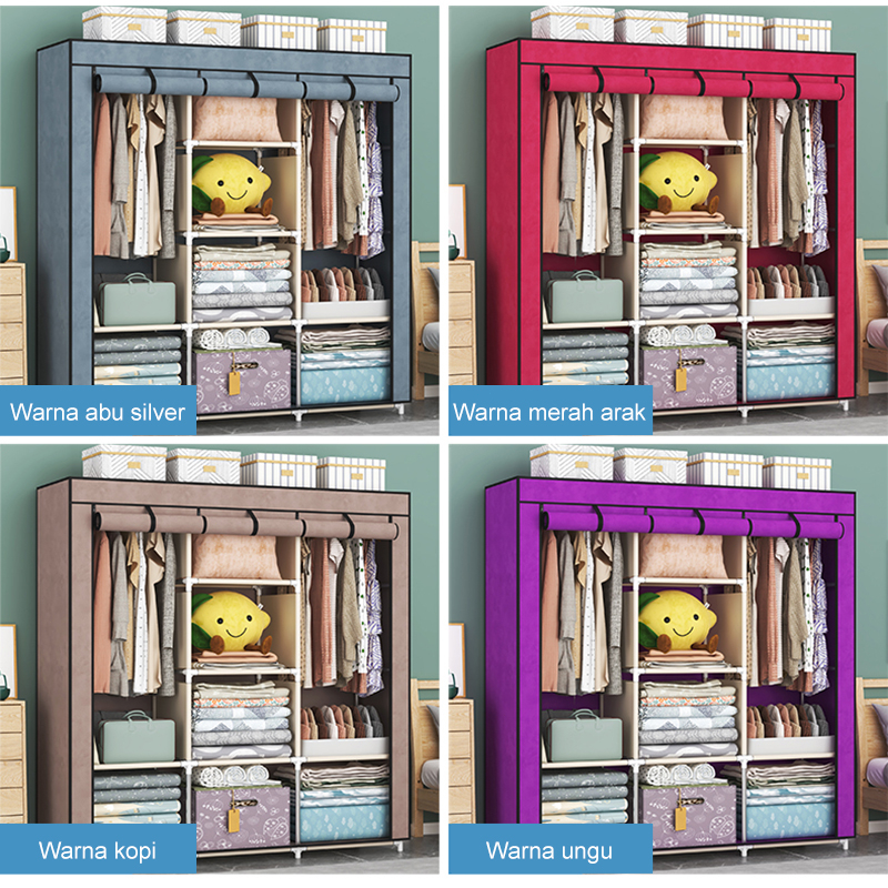 Lemari Pakaian Kain Portable Lemari Baju Kain Anti Debu Rak Tempat Penyimpanan Baju Wardrobe Serbaguna