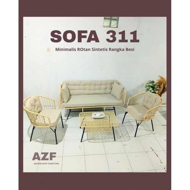 Kursi Sofa Minimalis Sudut Besar 311 Rotan Sintetis Rangka Besi Stabil Kuat Dan kokoh