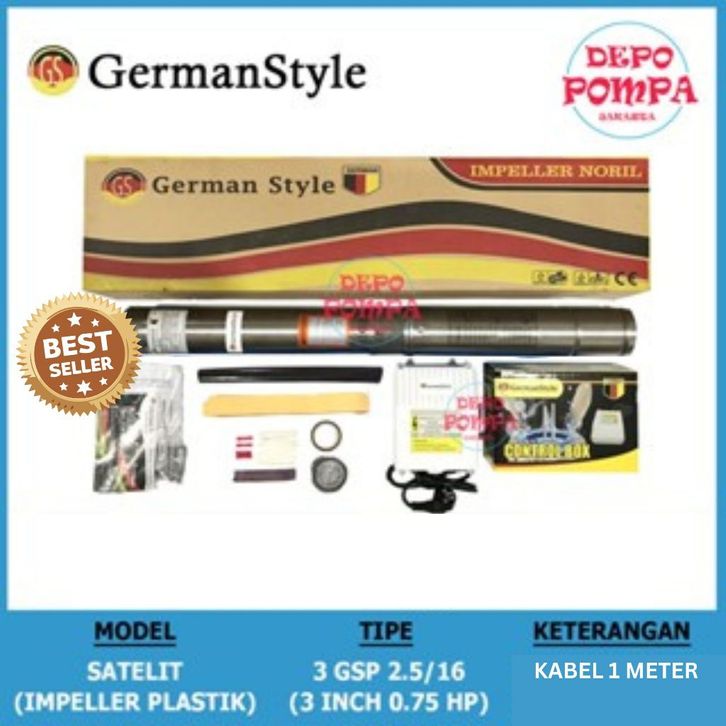 Pompa Satelit GERMAN STYLE 3 INCH 0.75 HP TANPA KABEL