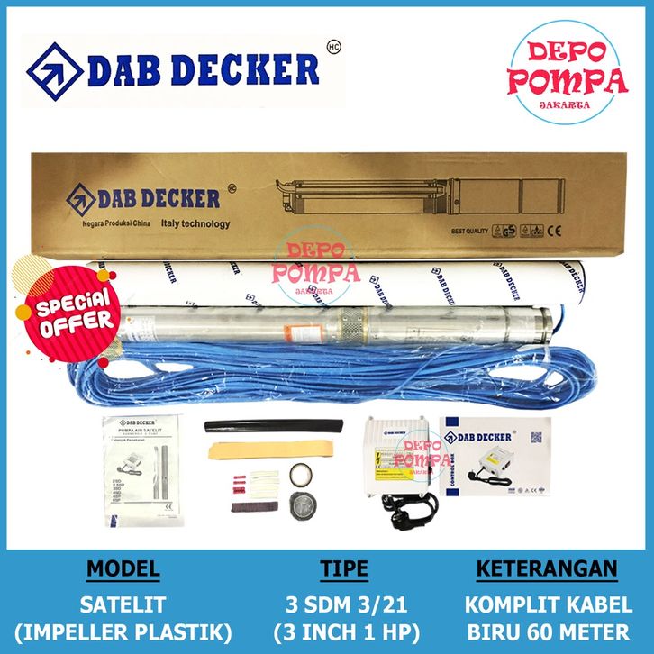 Pompa Satelit DABDECKER 3 INCH 1 HP KOMPLIT KABEL BIRU ASLI