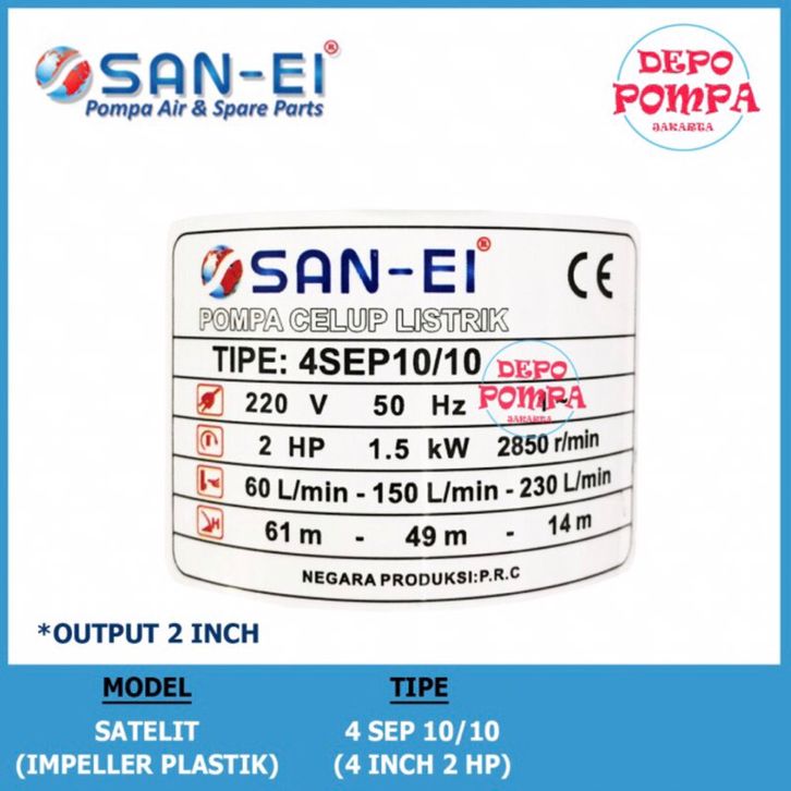 Pompa Satelit SAN EI 4 INCH 2 HP (Stainless) TANPA KABEL (Output 2 Inch) Impeller 10