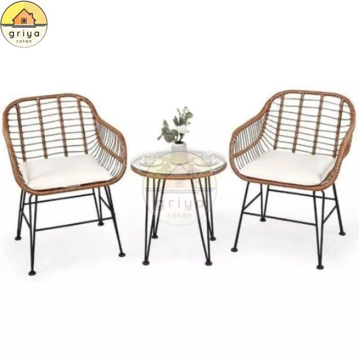 Set Kursi Teras Rotan Minimalis Rangka Besi