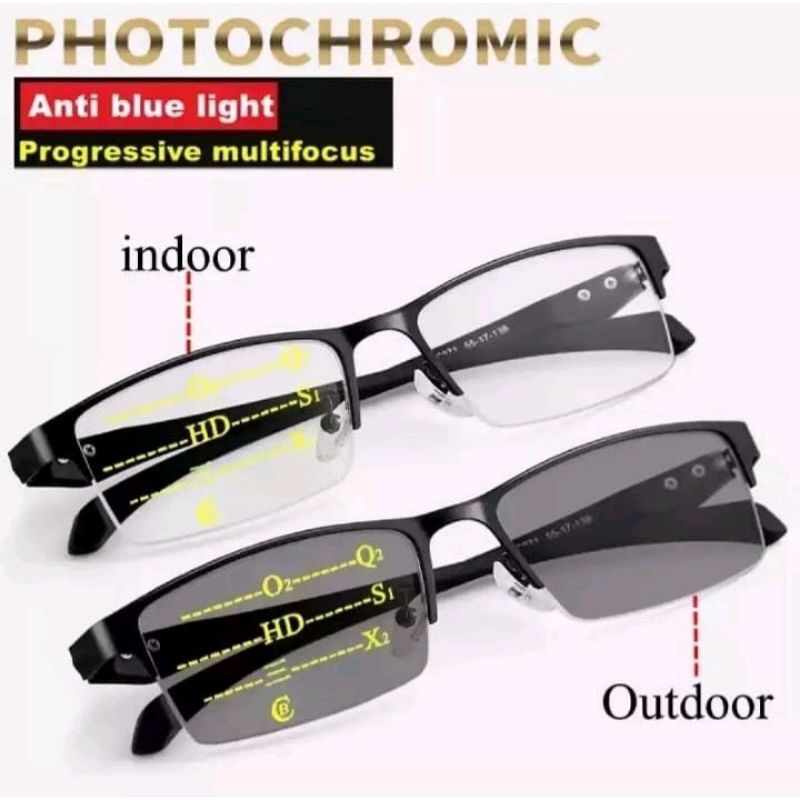 KACAMATA PROGRESIF PHOTOCROMIC ANTI RADIASI UNTUK BACA DAN JALAN PLUS MINUS PRIA DAN WANITA UNI