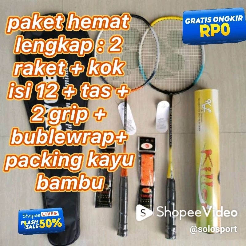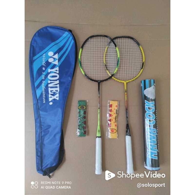 [Mall] PAKET 2 RAKET BADMINTON + TAS + GRIP + 12 KOK | FREE PACKING KAYU BAMBU