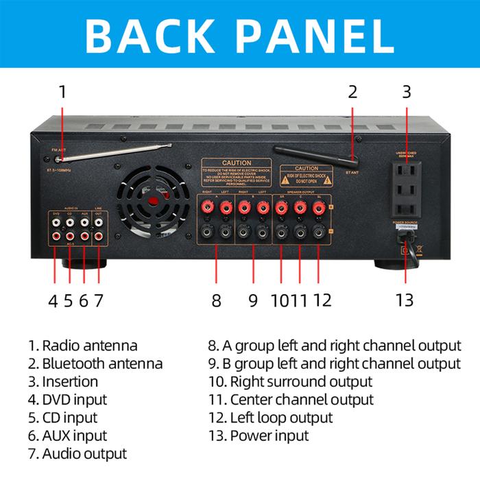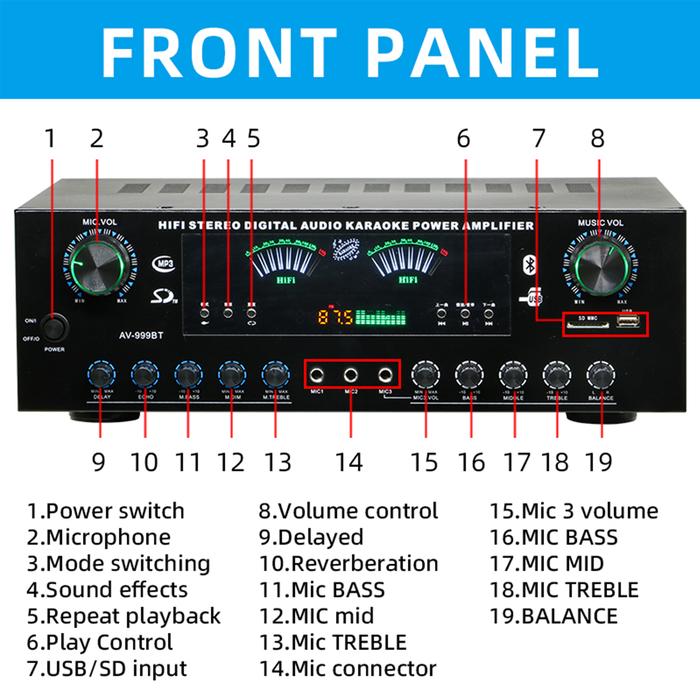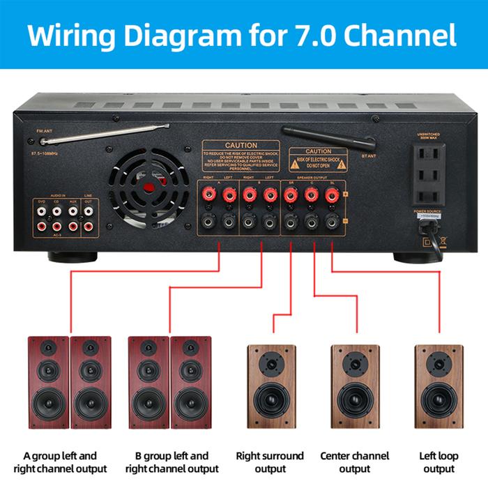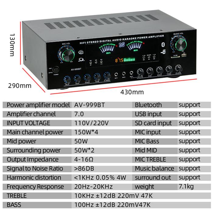 Shade Amplifier Pro AV-999BT | HiFi 7.0 Channel Power Amplifier - 1500W - Bluetooth - Surround Output