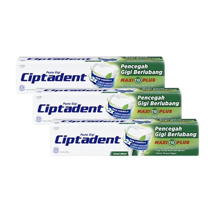 Ciptadent Pasta Gigi Maxi 12 Cool Mint Tube Plus Jumbo 225 gr x3
