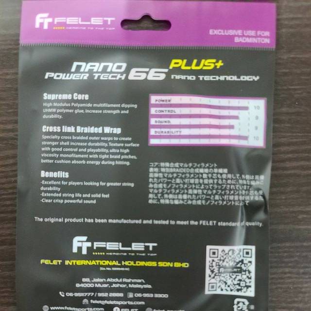[Mall] SENAR BADMINTON FELET NANO PLUS POWER TECH 66 ORIGINAL