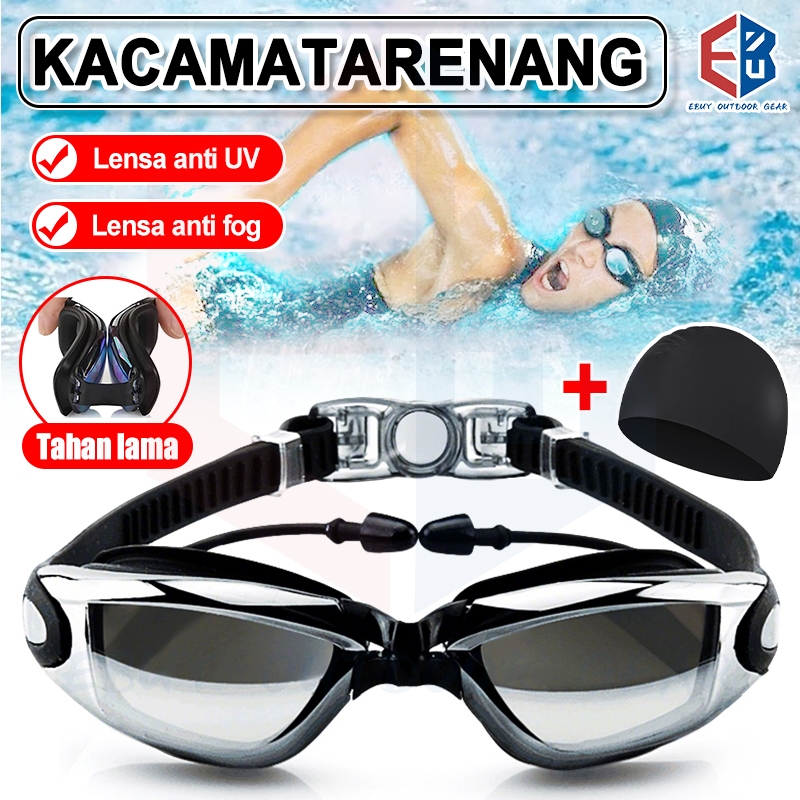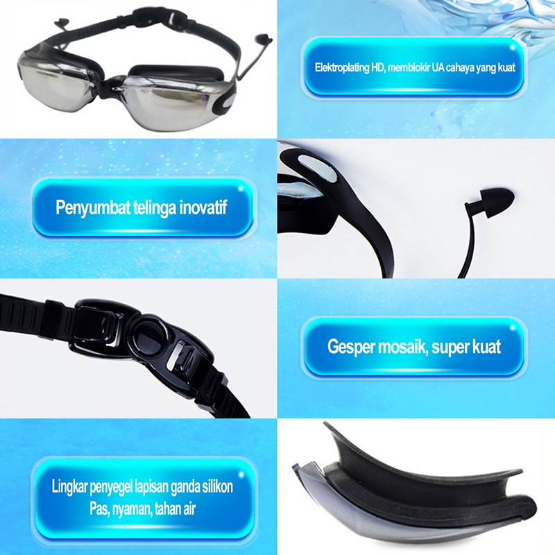[Mall] EBUY KACAMATA RENANG DEWASA ANTI FOG UV /TOPI RENANG + KACAMATA RENANG + PENYUMBAT TELINGA/KACAMATA RENANG SET TOPI RENANG DEWASA RENANG PROFESIONAL