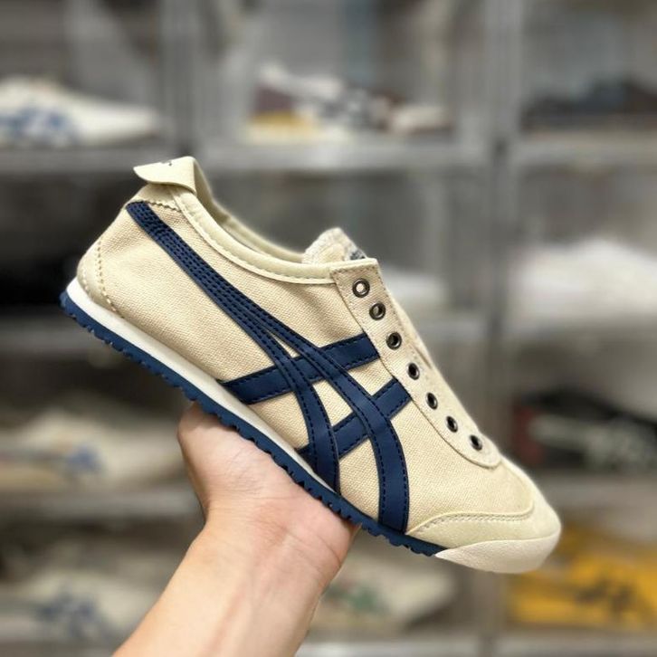 TERLARIS!! Kanvas Sepatu Onitsuka Slip On Cream Navy