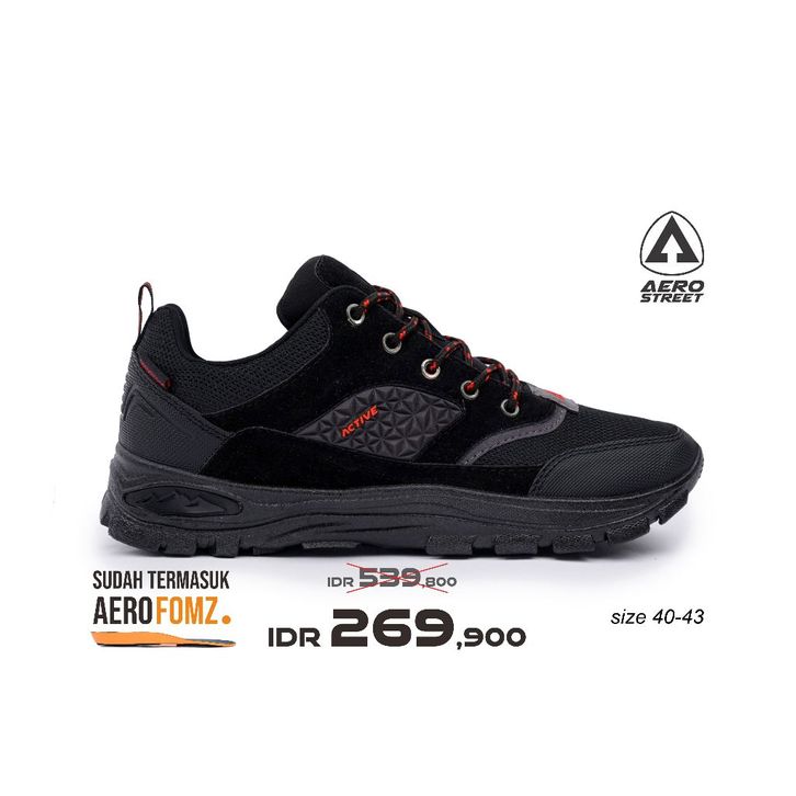 TERLARIS!! Aerostreet 40-43 Active Low Hitam Hitam Merah - Sepatu Sneaker Boots