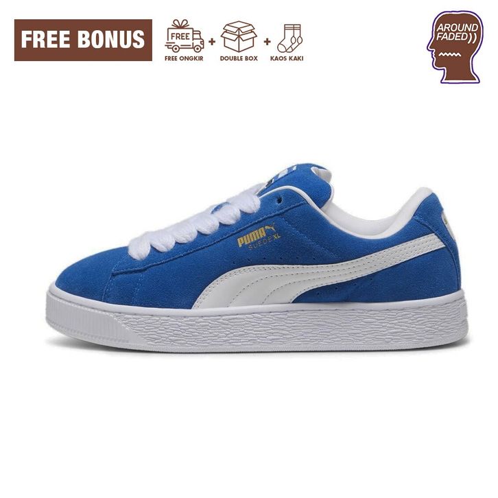 TERLARIS!! SEPATU SNEAKERS Puma Suede Xl Royal Blue White - UNISEX - AROUND FADED