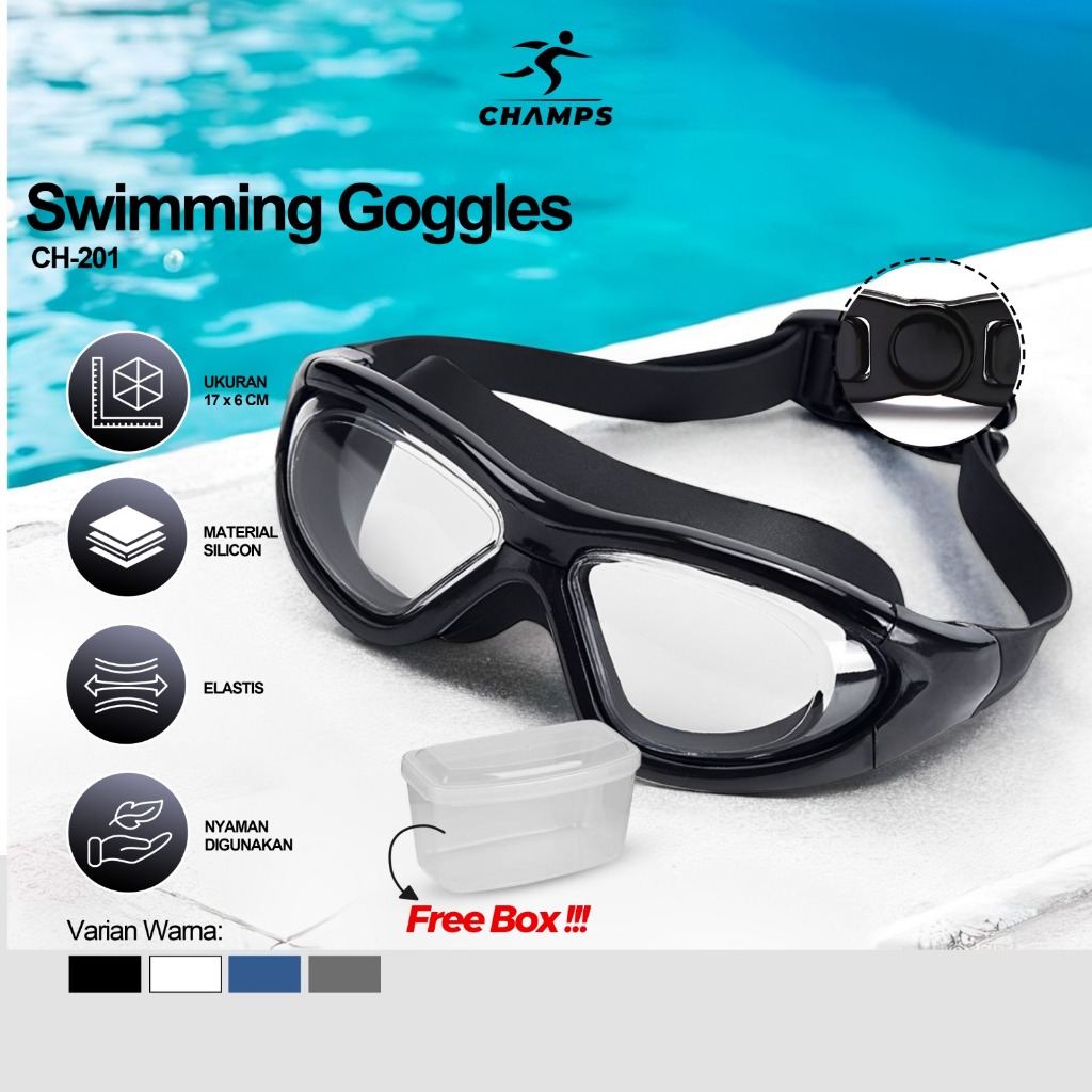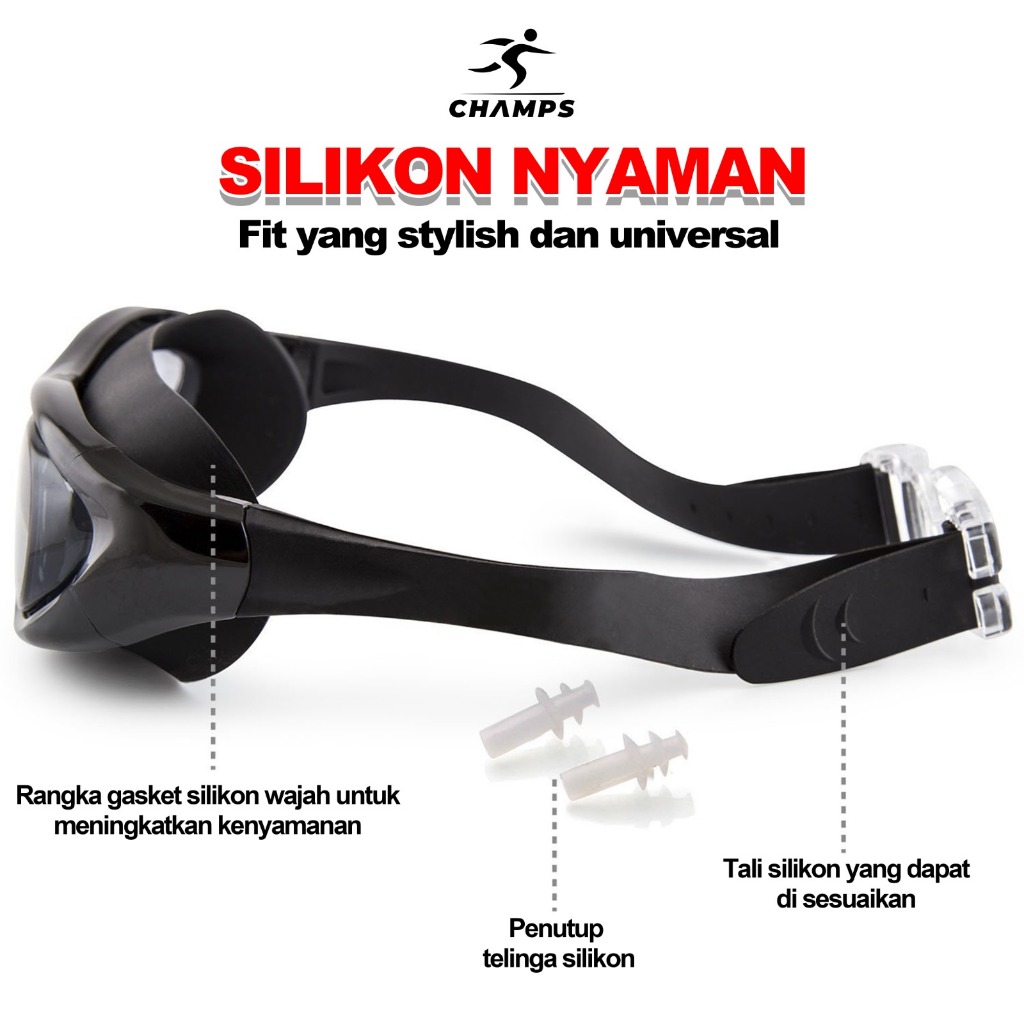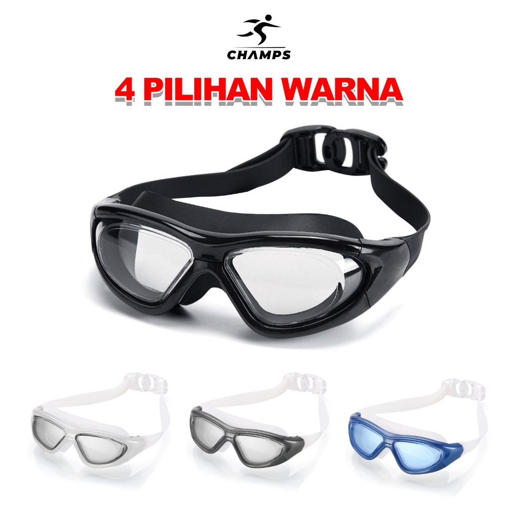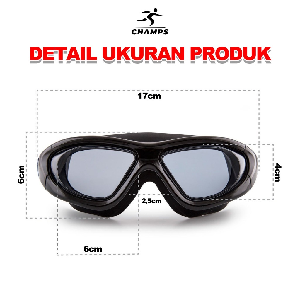 [Mall] CHAMPS KACAMATA RENANG DEWASA / SWIMMING GOGGLES ANTI FOG/UV - MEDIUM FRAME