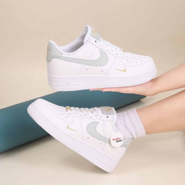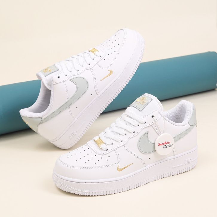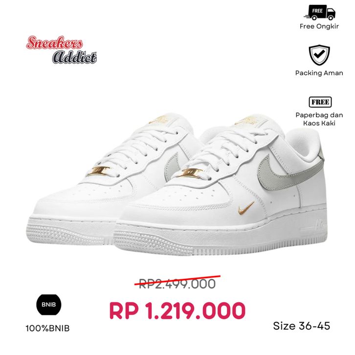 TERLARIS!! Sepatu Sneakers Nike Air Force 1 Essentials White Grey Gold Mini Swoosh 100% BNIB Global Market