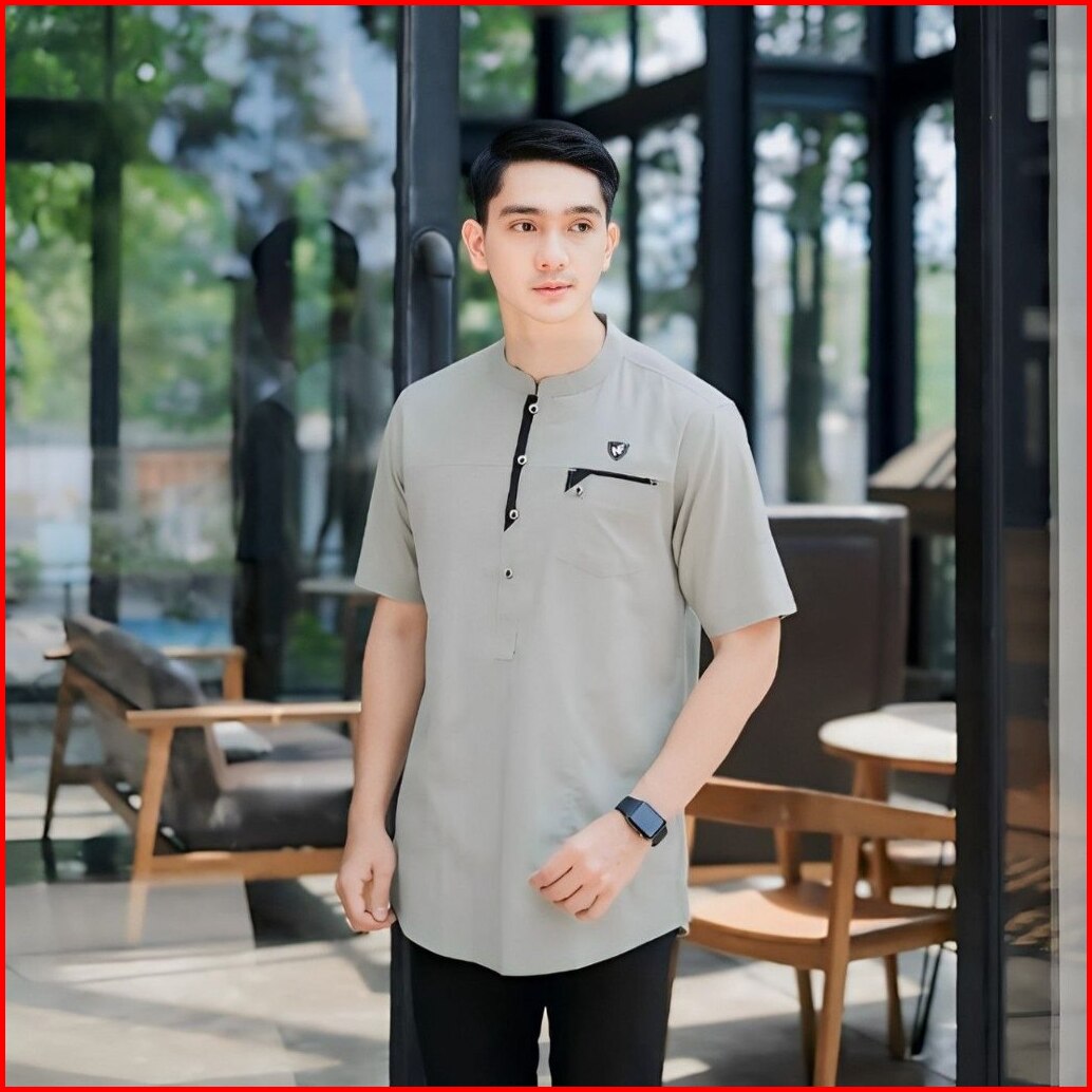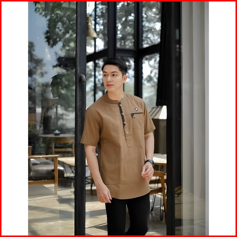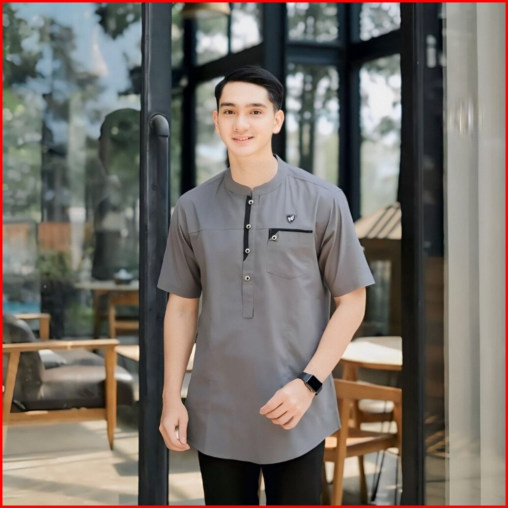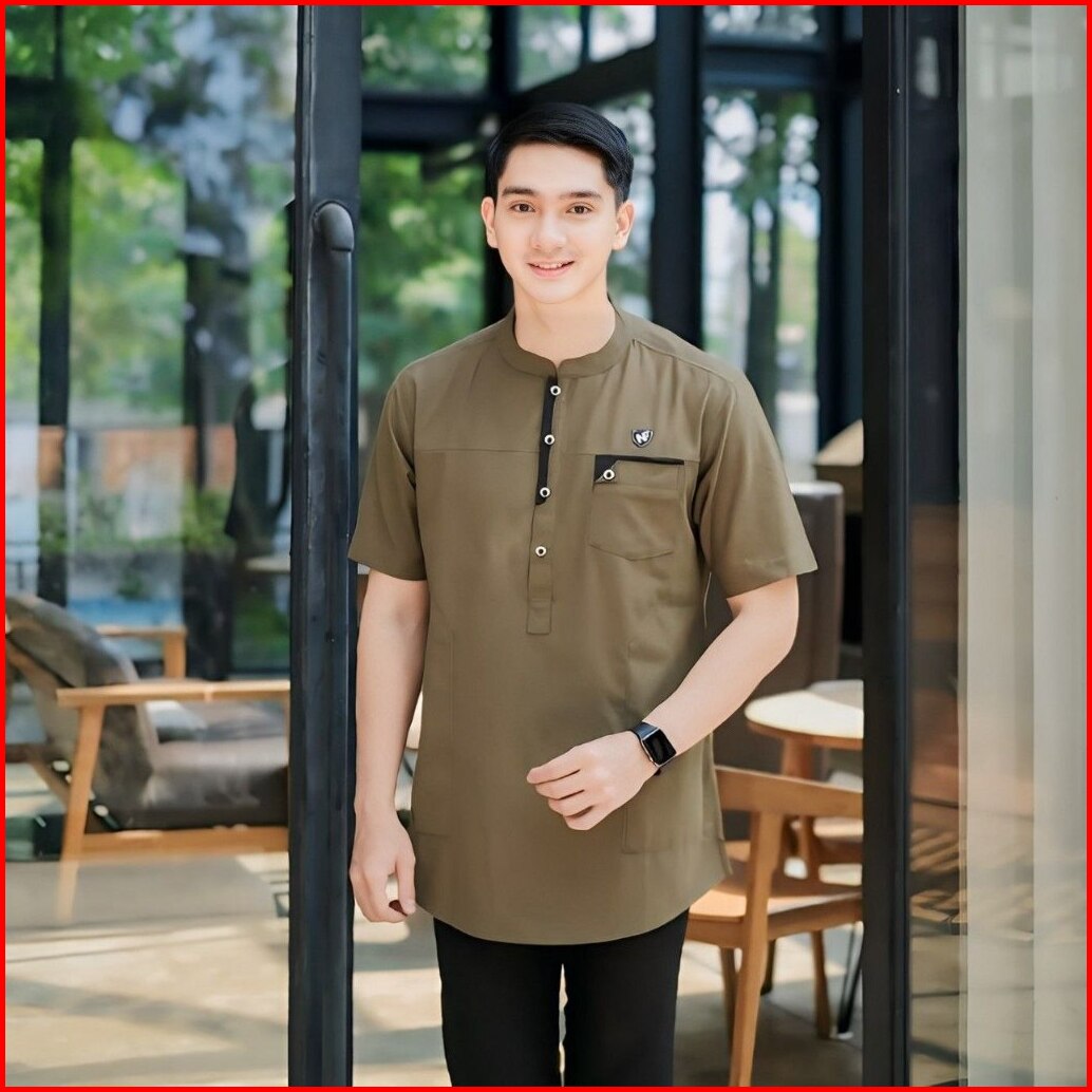 Baju Muslim Koko Kurta Pria Dewasa Lengan Pendek Terbaru Modis Casual Toyobo Import
