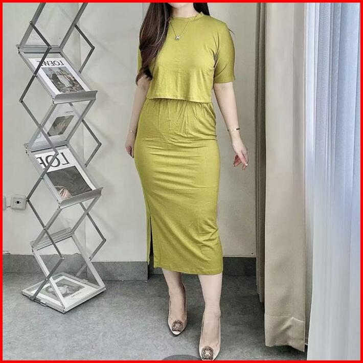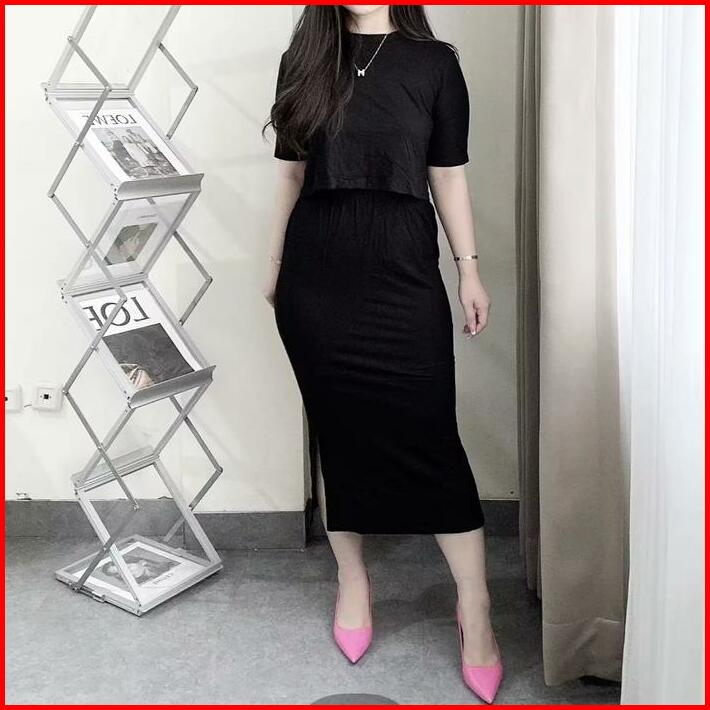 Yoonah Set One Set Skirt Setelan Wanita Rok Belah Samping Tga Fashion Grosir