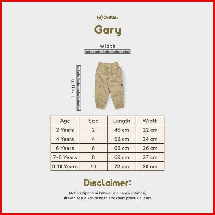 Ovikids Gary Celana Anak Laki-laki Perempuan Chino Cargo Jogger 1-8 Tahun