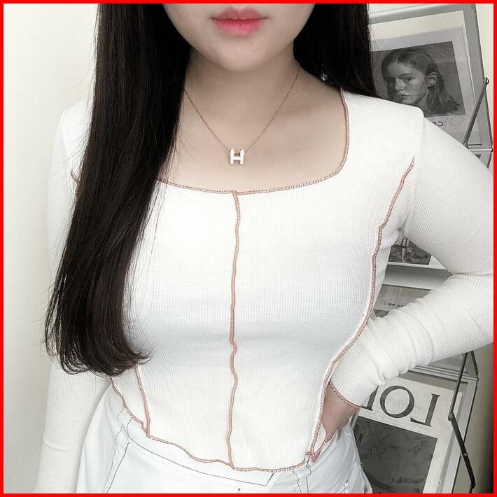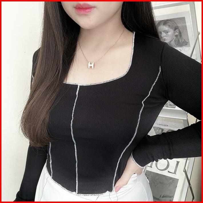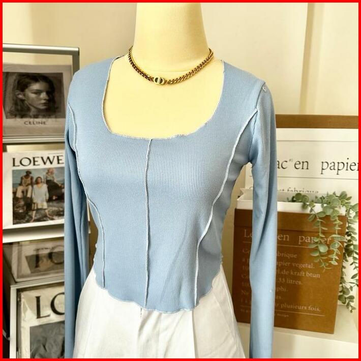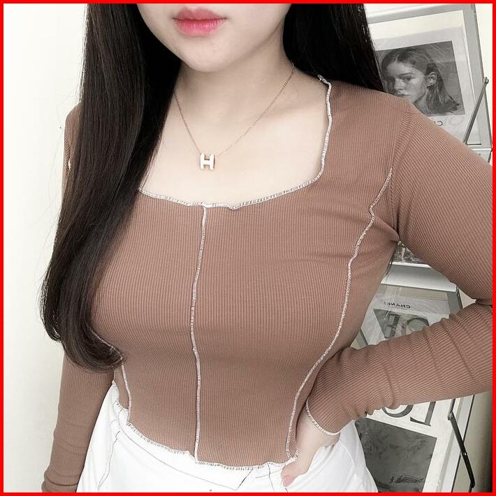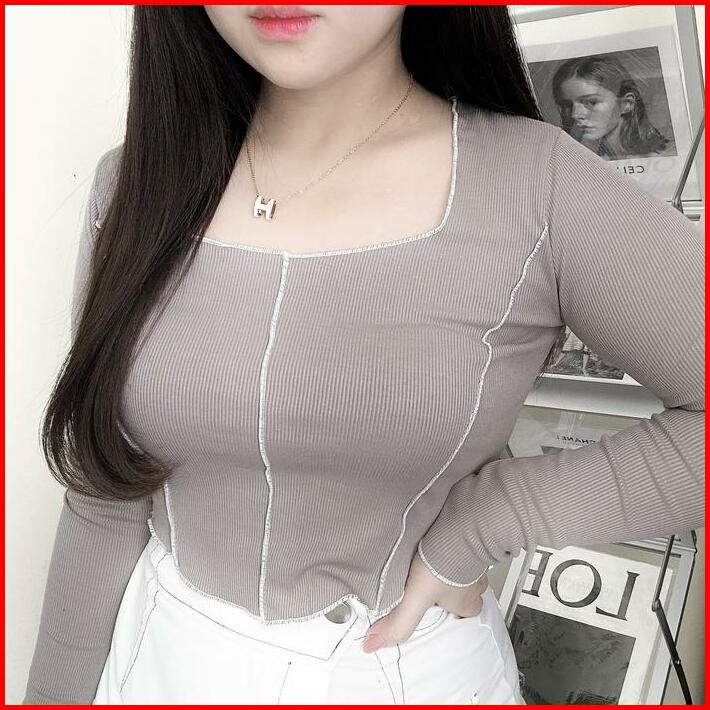 Heejin Knit Top Long Sleeve Crop Top Atasan Lengan Panjang Wanita Tga Fashion Grosir Rib Knitwear