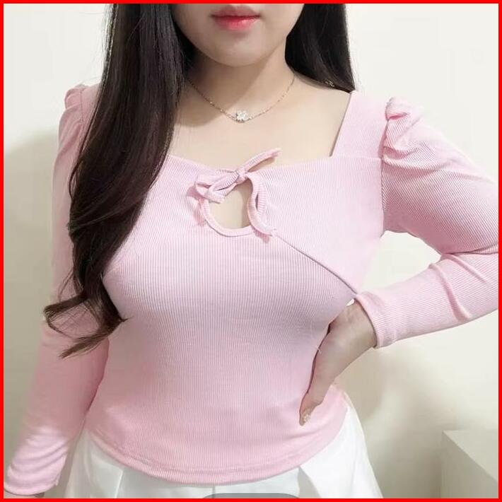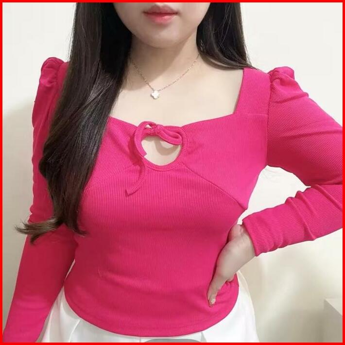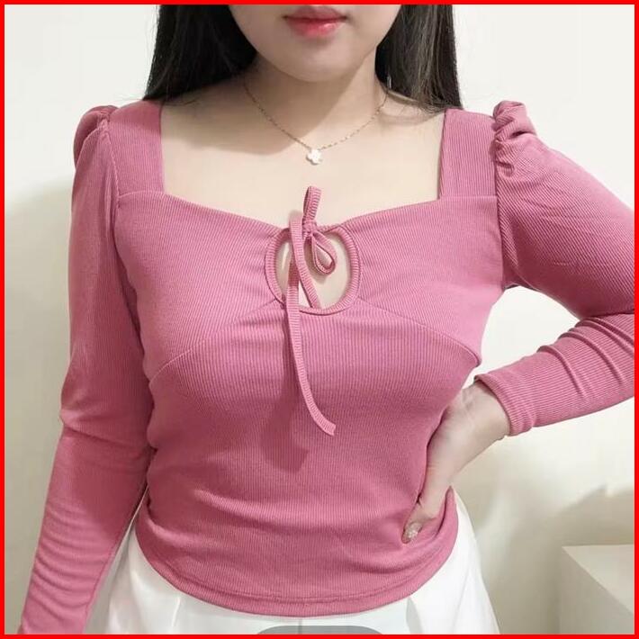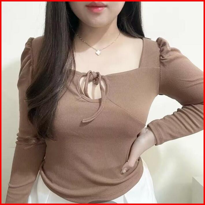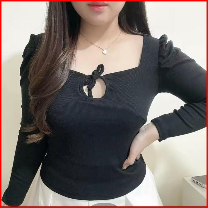 Aiko Puff Long Sleeve Cross Neck Top Atasan Wanita Korean Fashion Tga Fashion Grosir