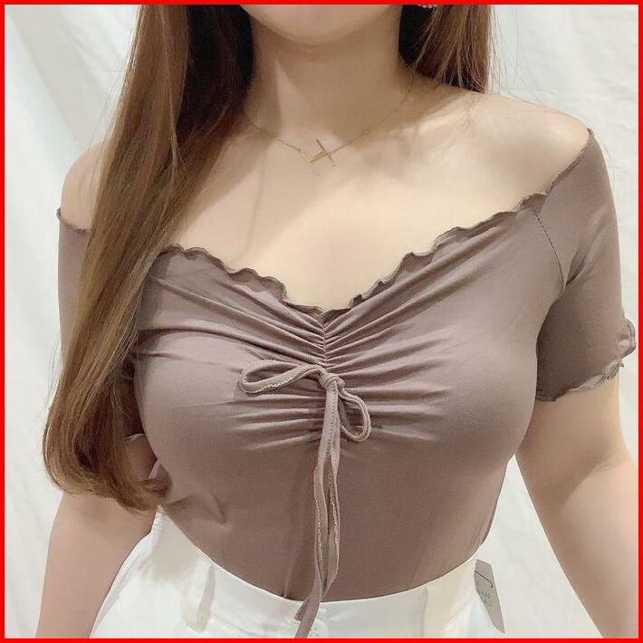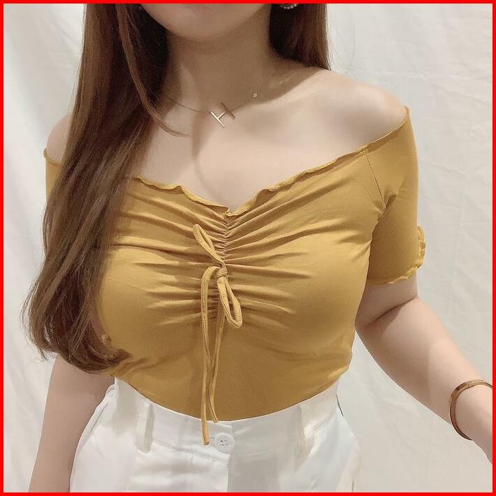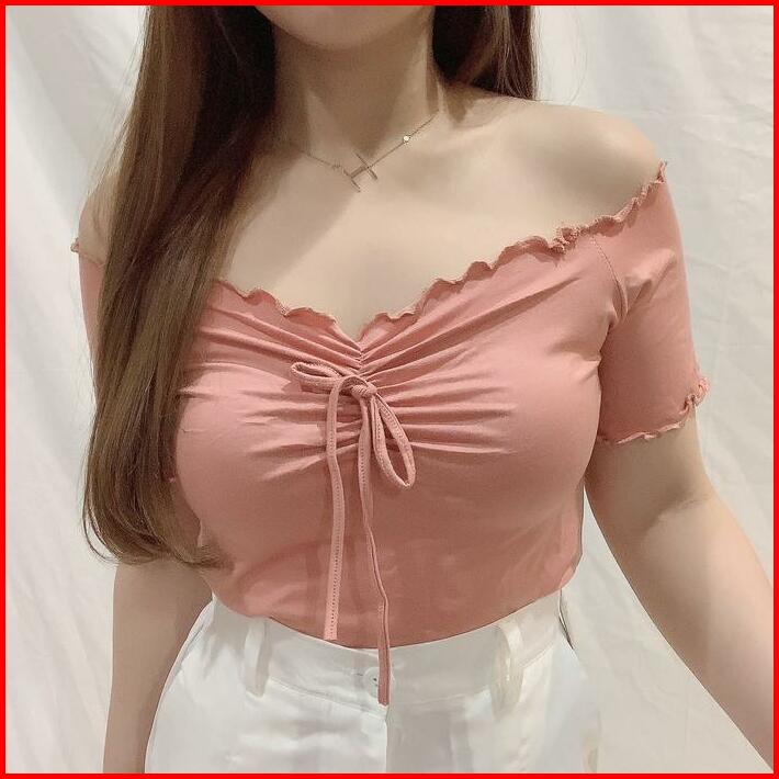 Bow Sabrina Camie Crop Top Kaos Atasan Wanita Korean Fashion Off Shoulder Tga Fashion Grosir